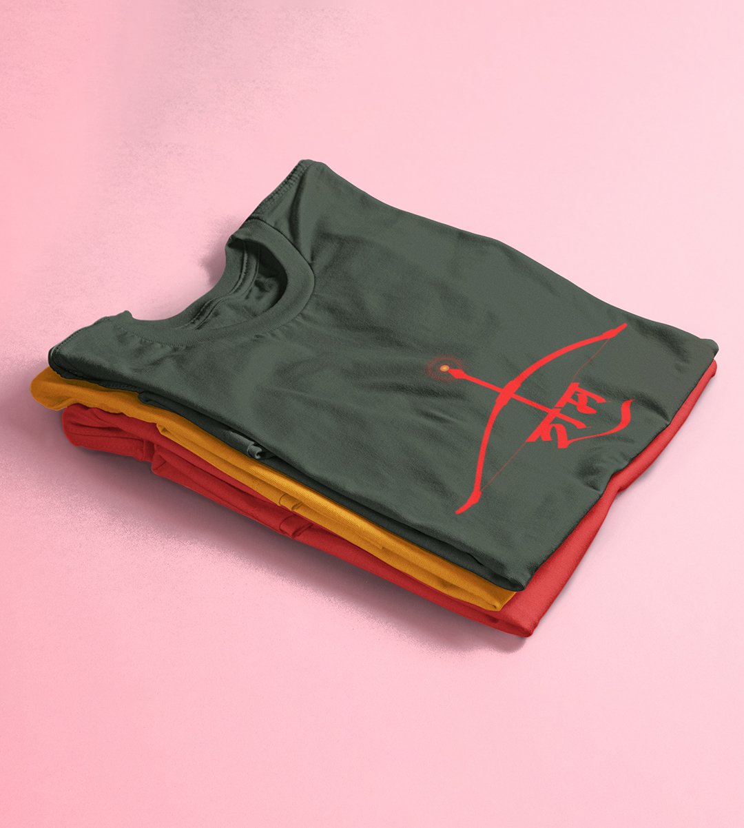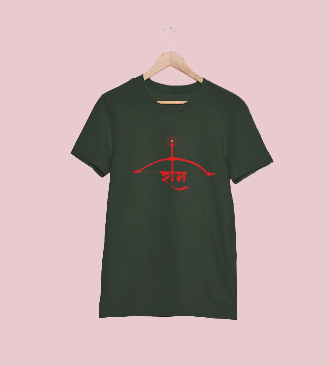 Ram (crossbow)printed unisex adults round neck cotton half-sleeve green tshirt specially for Navratri festival/ Durga puja