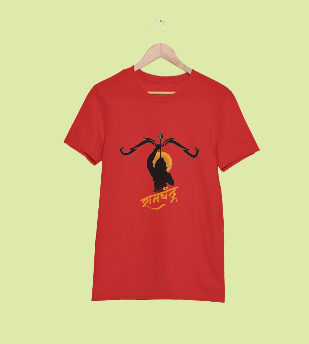 Ramchandra printed unisex adults round neck cotton half-sleeve red tshirt specially for Navratri festival/ Durga puja