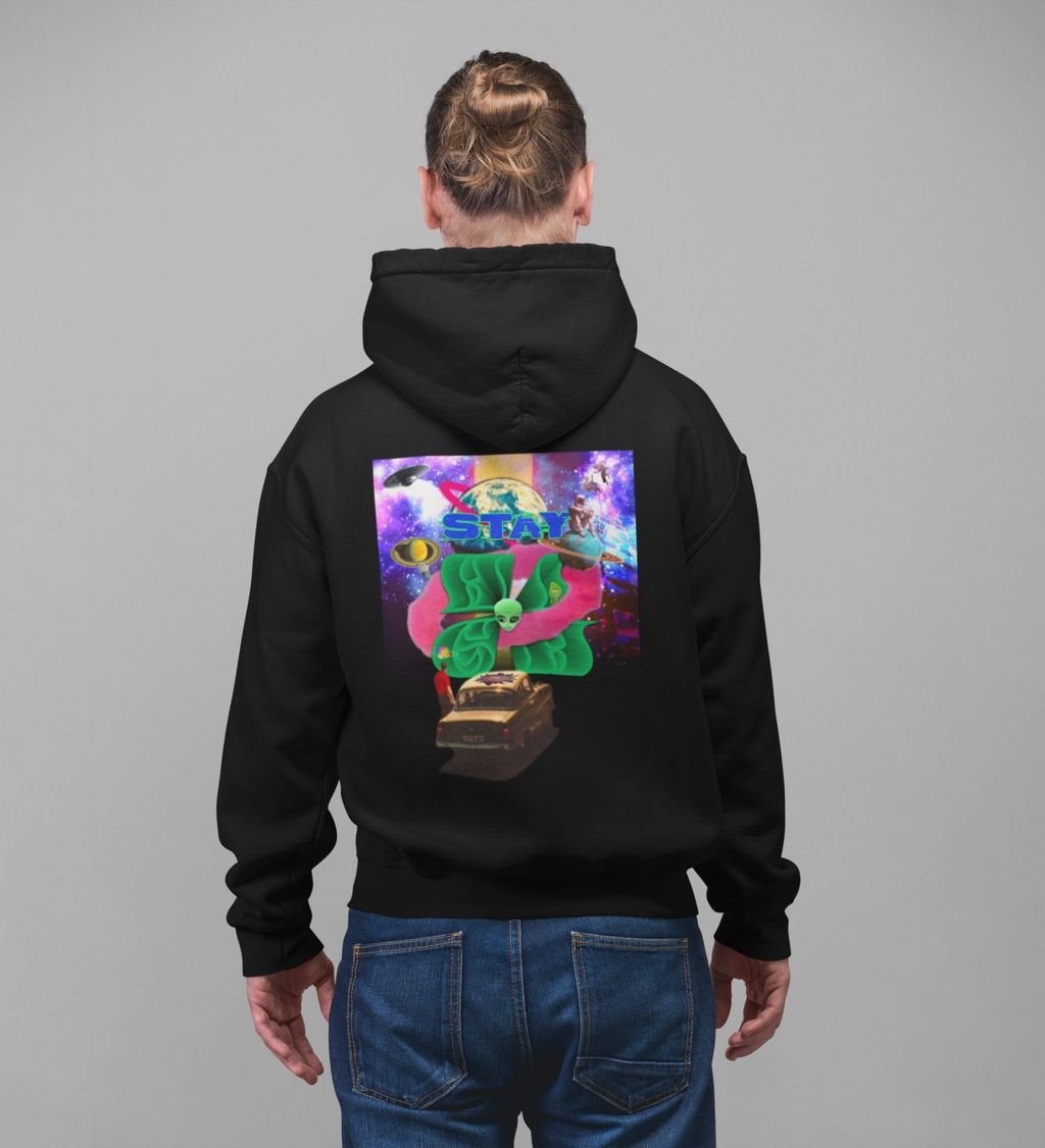 Reach for the Stars Stay High Black Cotton Printed Hoodies For Men
