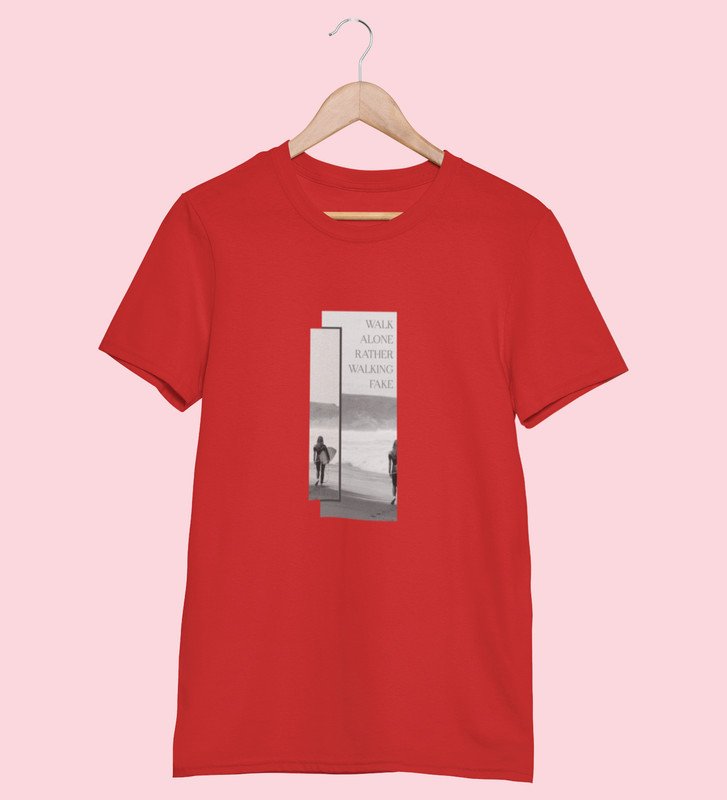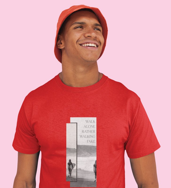 Real Talk Real Walk by Red Urban Vibes: Front Printed Oversized Round Neck Tee - Men's Street Style"