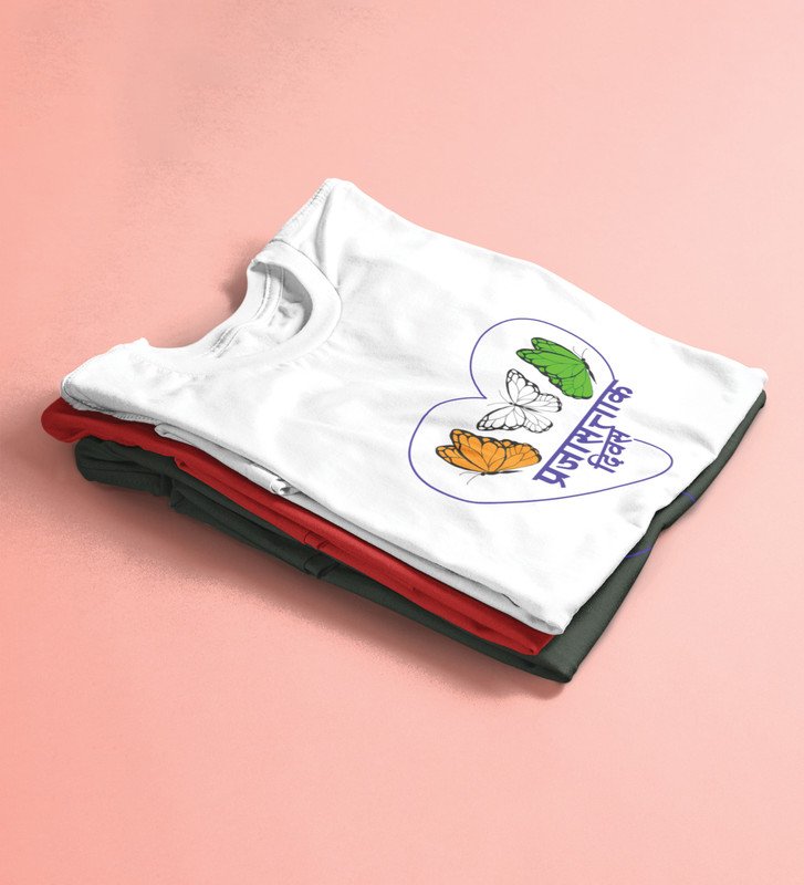 Rebel Republic Day White Round Neck Printed T-shirt For Mens Boys