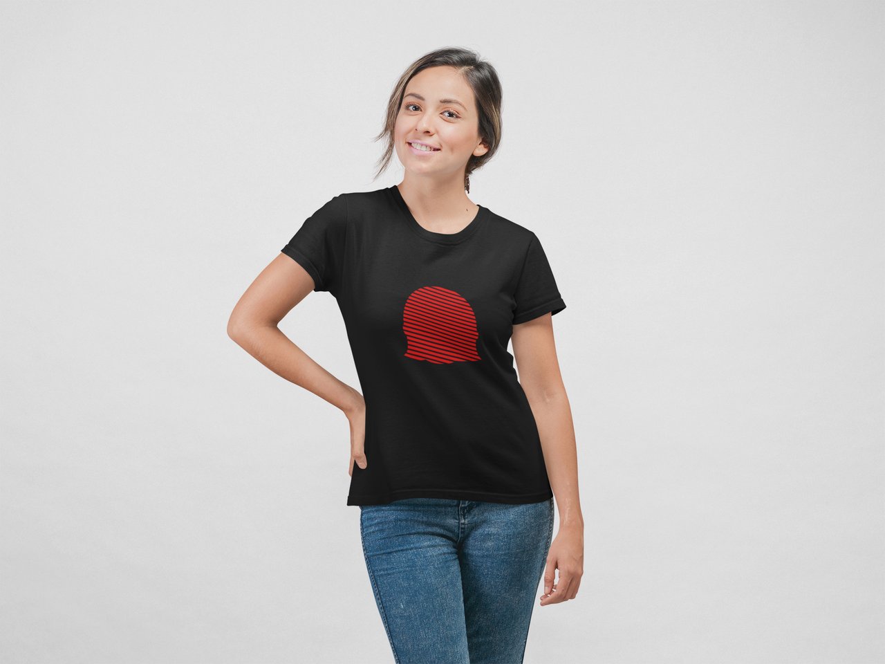 Red Haired Girl - Line Art for Female - Half Sleeves T-shirt