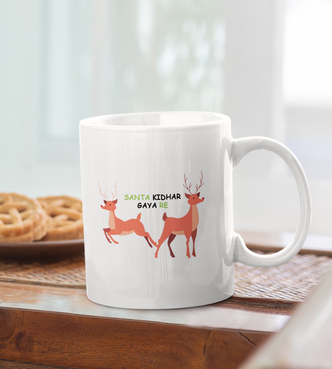 Reindeer Riddles: 'Santa Kahan Gaya Re?' Comical Coffee Mug Design! Best Gift for Boys Office Friends Girls Best Friend