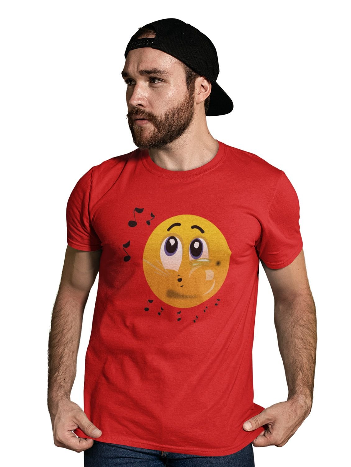 Remembering Music with an Emotional Face Emoji T-shirt (Red) - Clothes for Emoji Lovers - Foremost Gifting Material for Your Friends and Close Ones