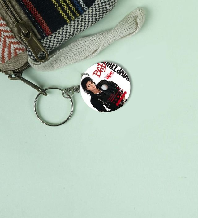 Turn up the nostalgia with this bold Art-Disc Theme Printed Round Keychain Pack of 2. Inspired by iconic retro CD covers and legendary pop culture, this keychain brings the ultimate throwback energy wherever you go. Featuring a striking black outfit, red "BAD"-style typography, and a digital music player overlay, it captures the essence of the golden era of music. Whether you're a die-hard old-school fan or just love edgy design, this keychain hits the right note.