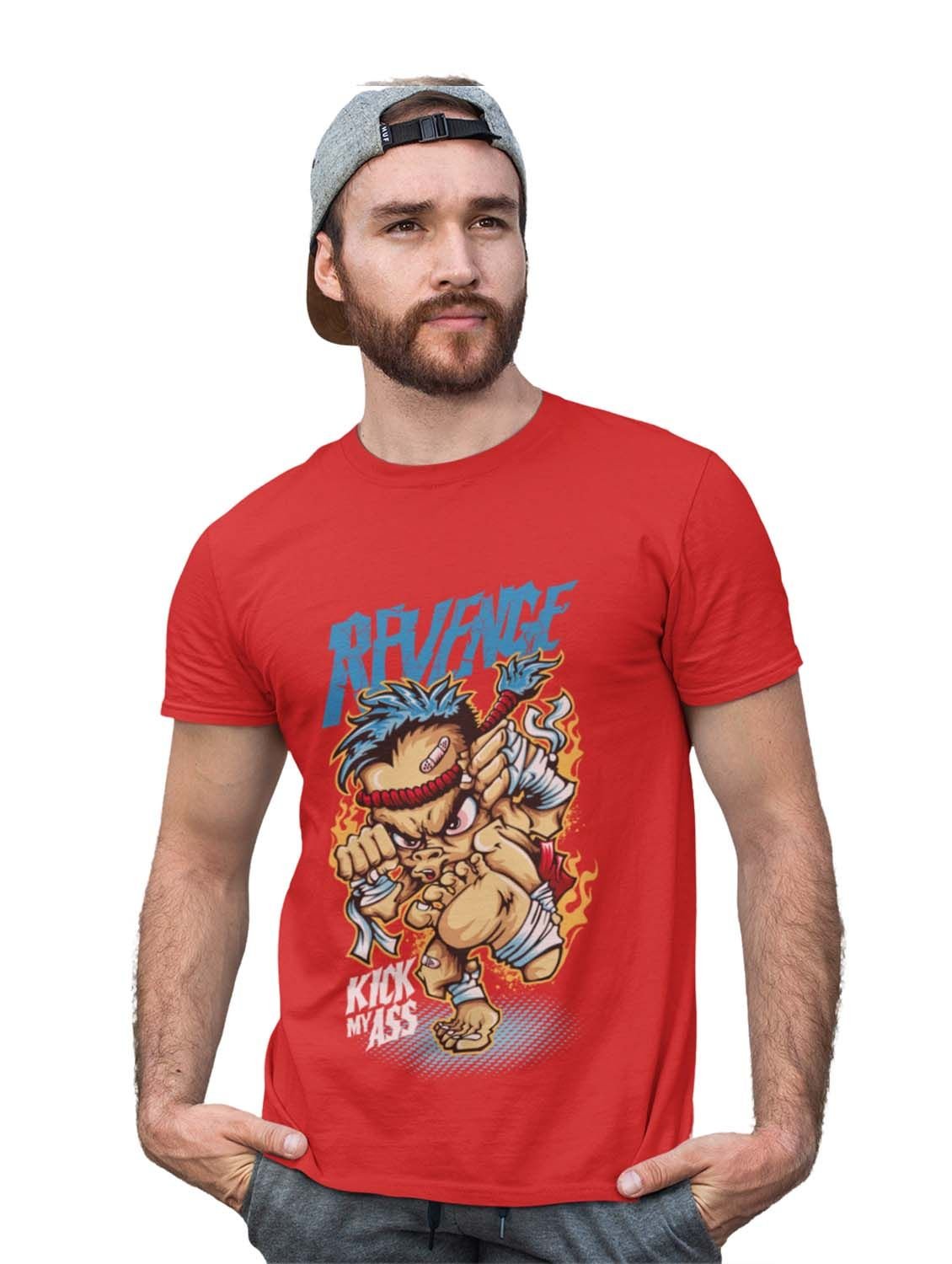 Revenge Red Round Neck Cotton Half Sleeved T-Shirt with Printed Graphics