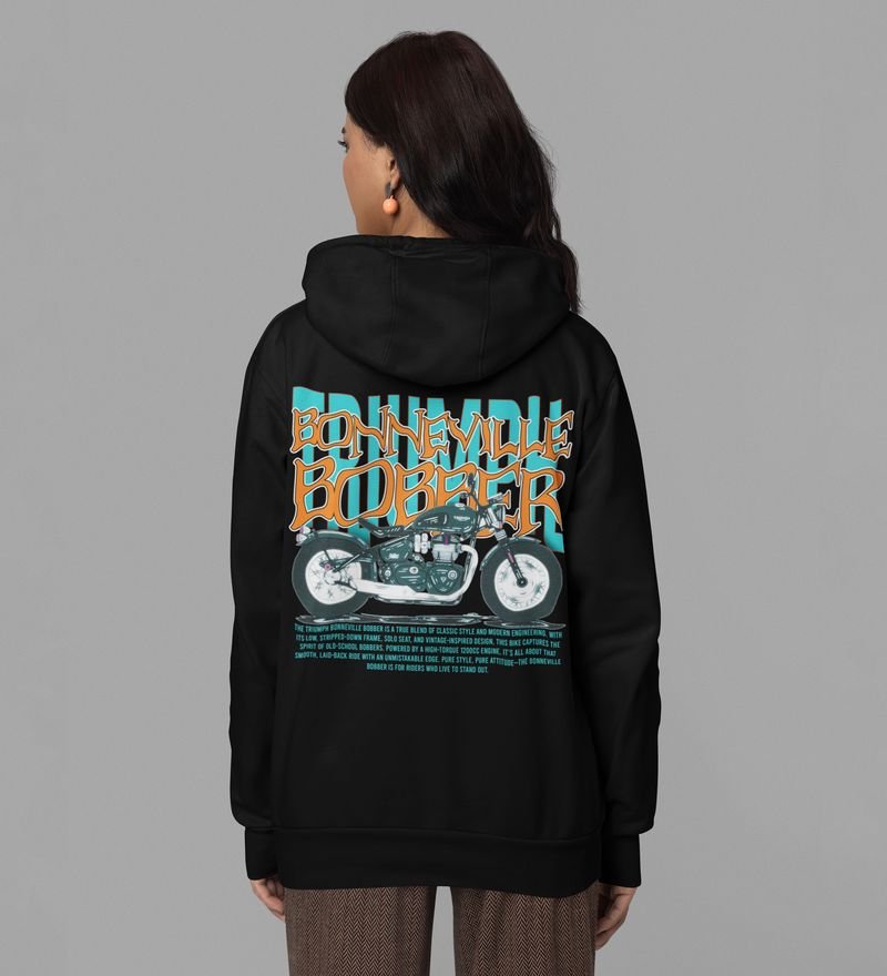 Ride in Style Classic Cruiser Printed Black Hoodie for Women