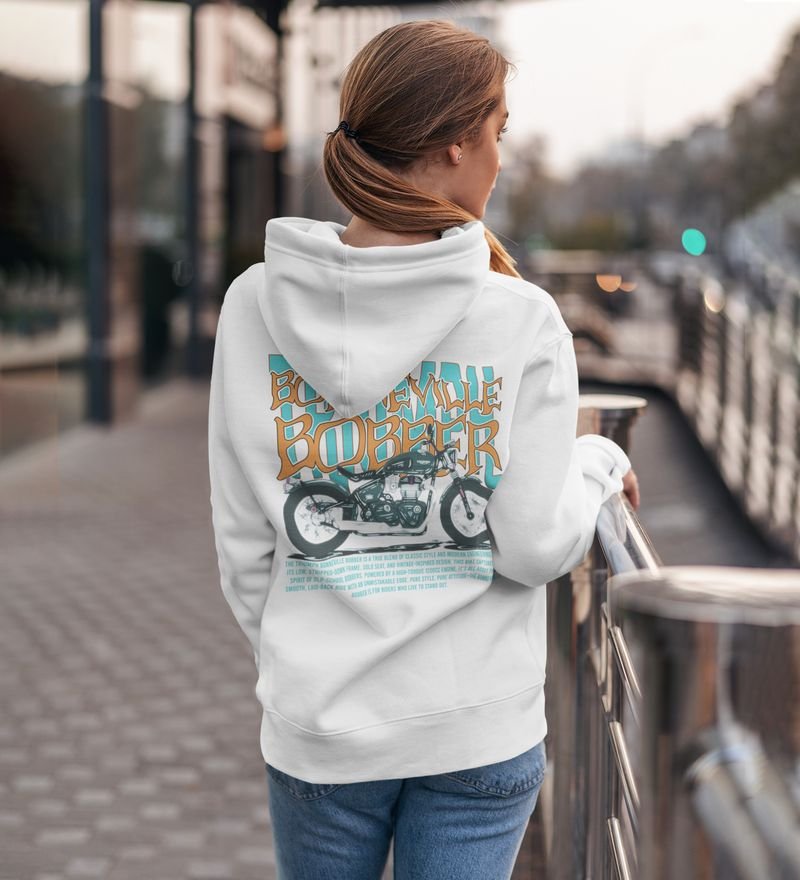 Ride in Style Classic Cruiser Printed White Hoodie for Women