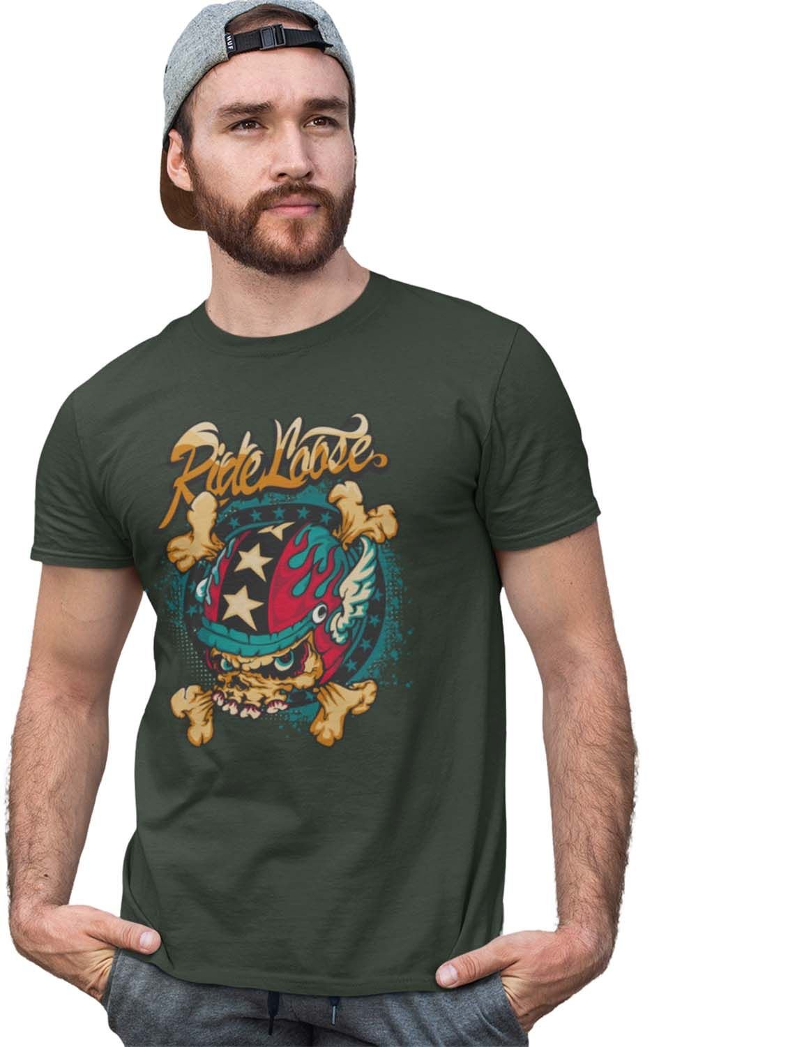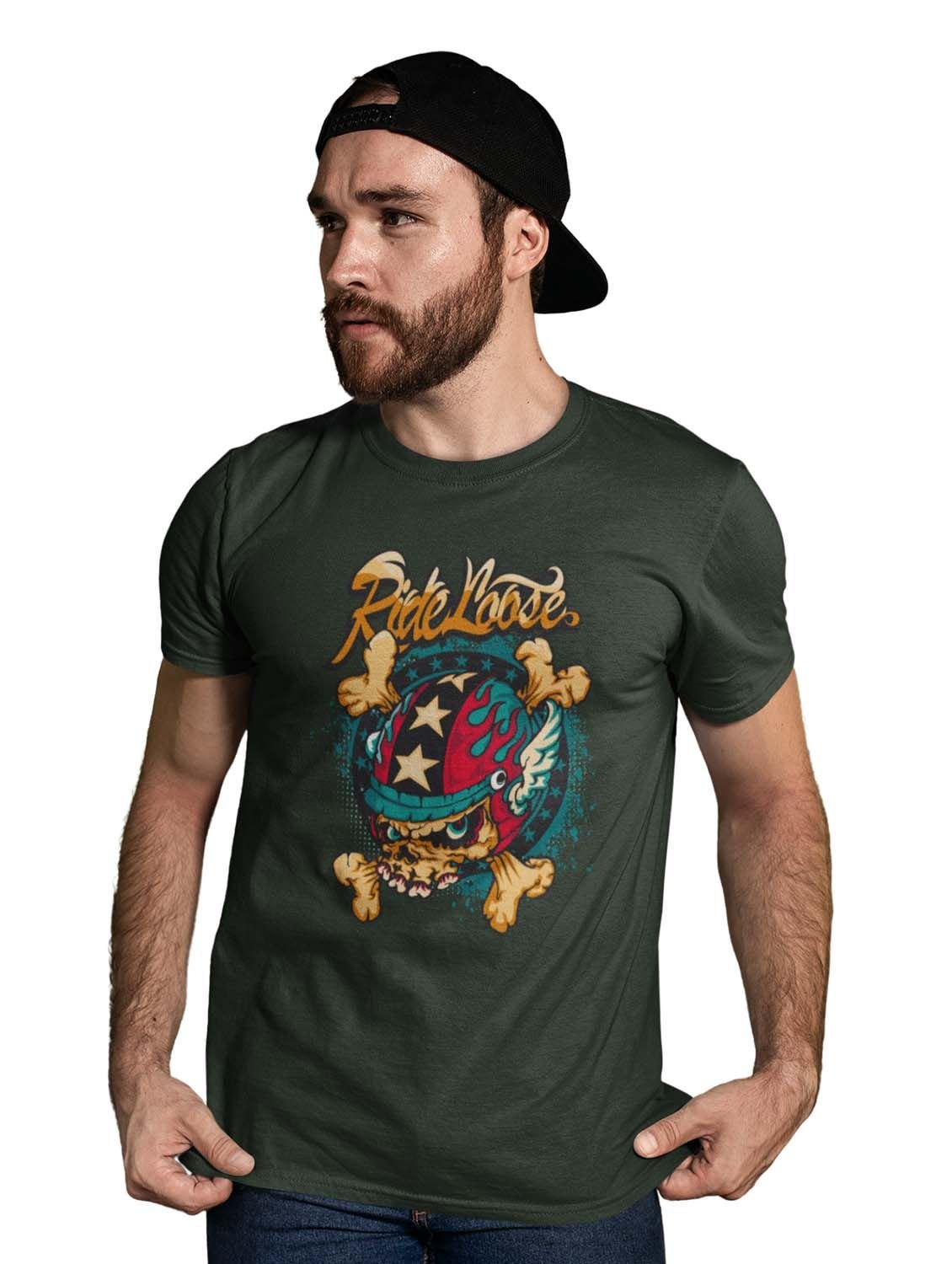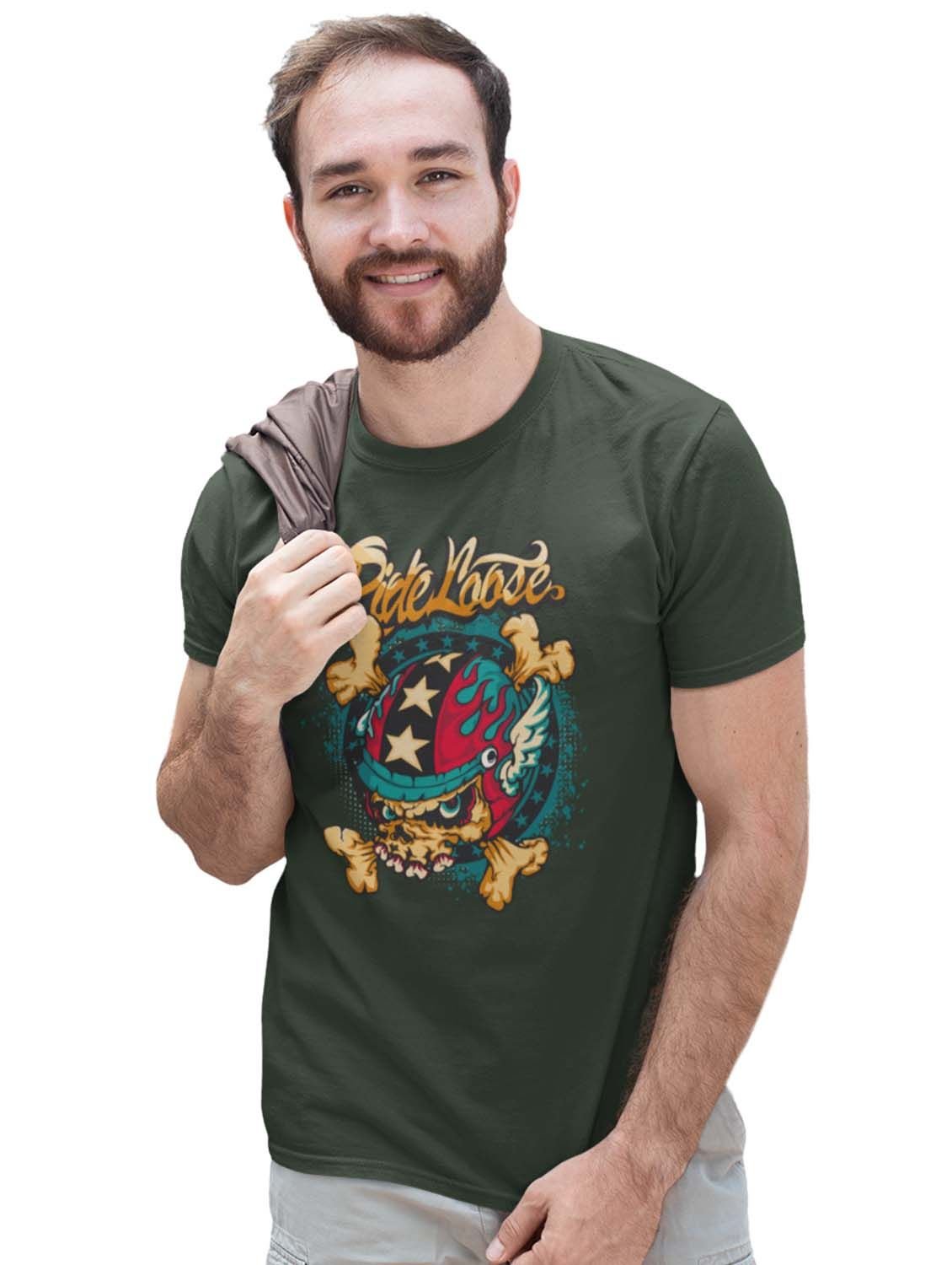 Ride Loose, (BG Yellow) Green Round Neck Cotton Half Sleeved T-Shirt with Printed Graphics