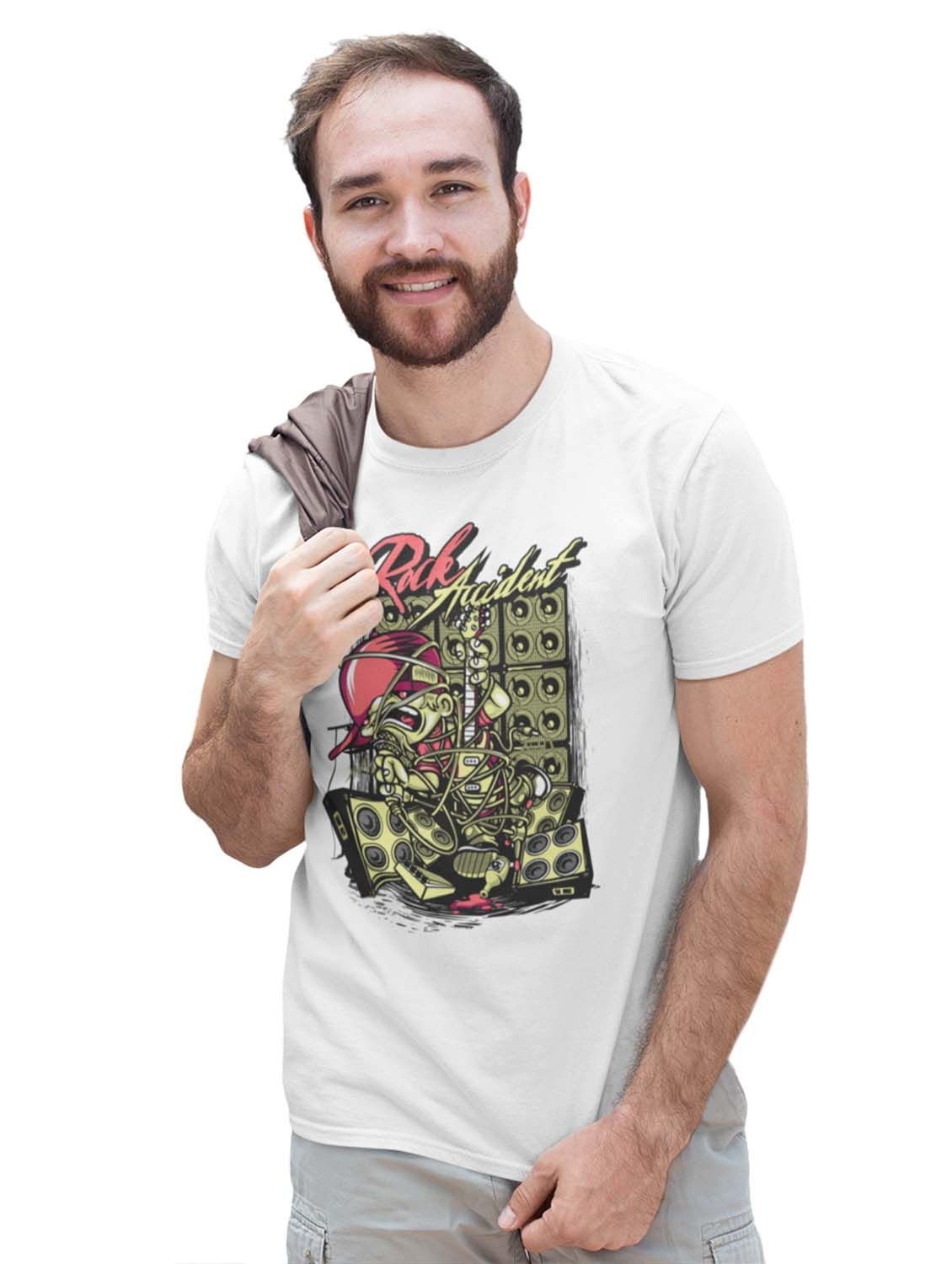 Rock Accident White Round Neck Cotton Half Sleeved T-Shirt with Printed Graphics