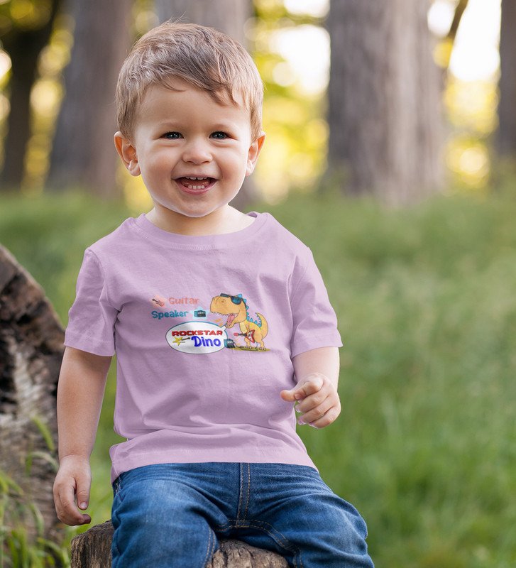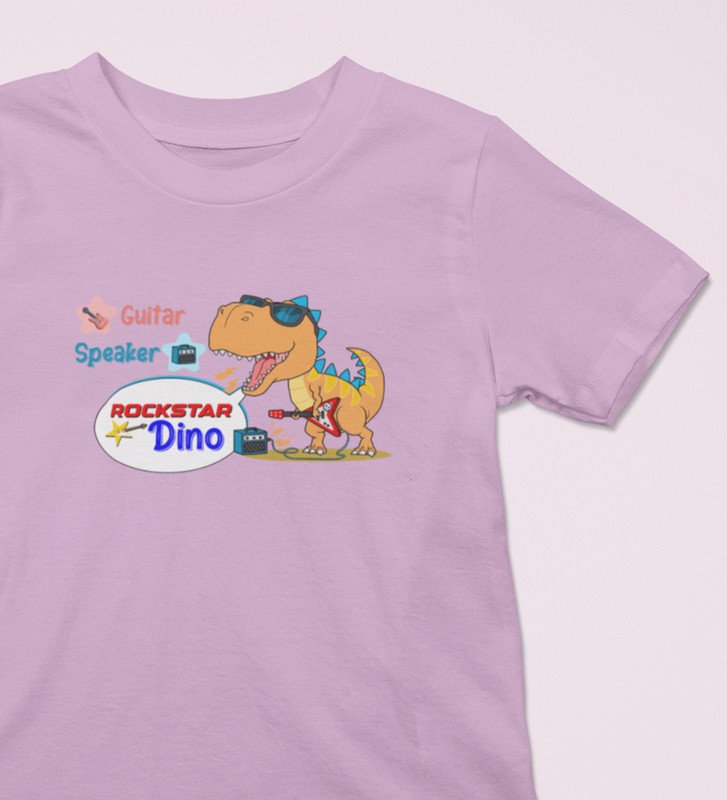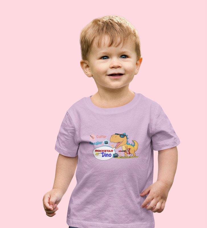Rockstar Dino, Boys Printed Crew Neck T-shirt (Purple)
