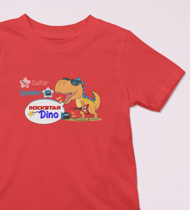 Rockstar Dino, Boys Printed Crew Neck T-shirt (Red)