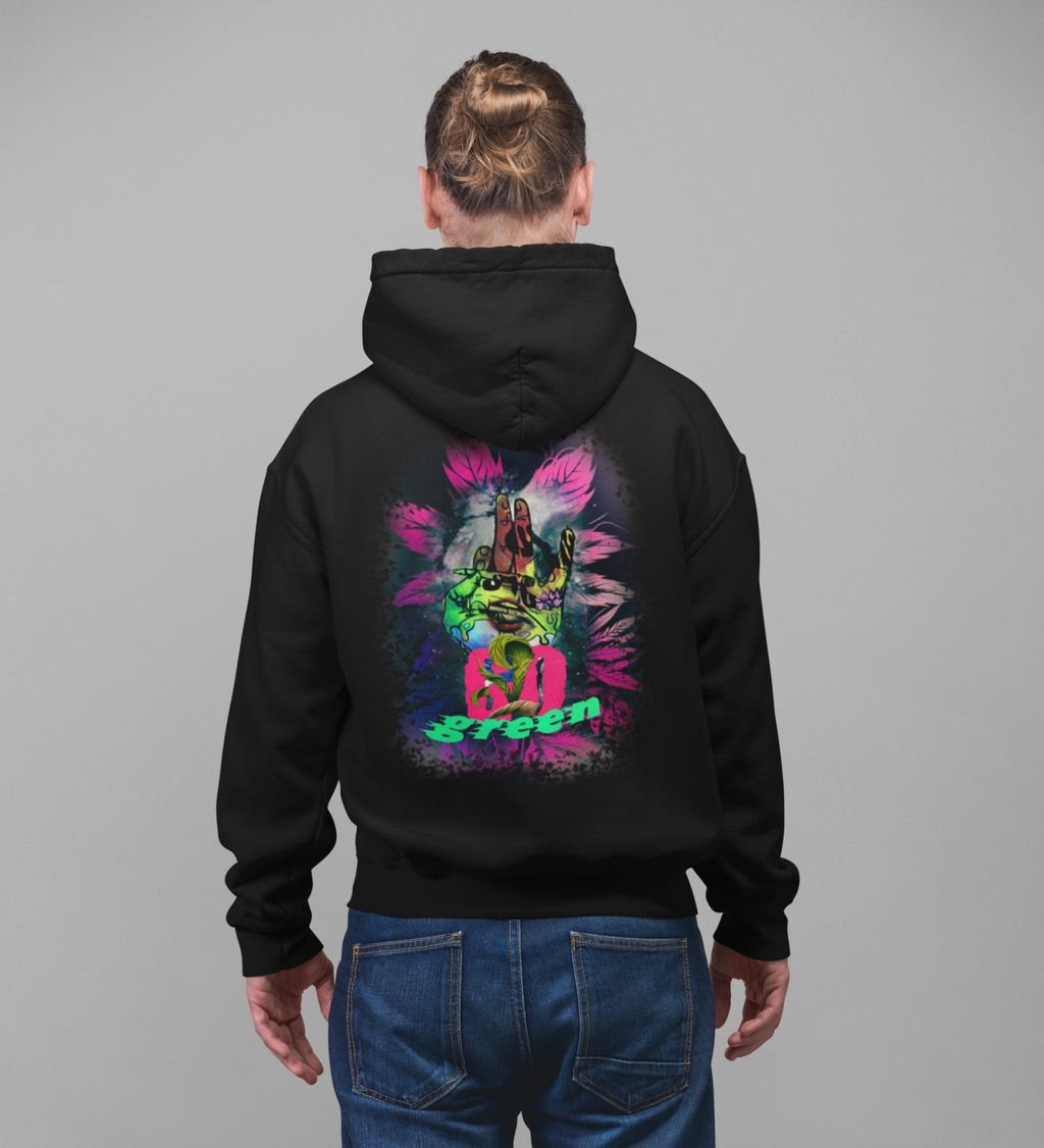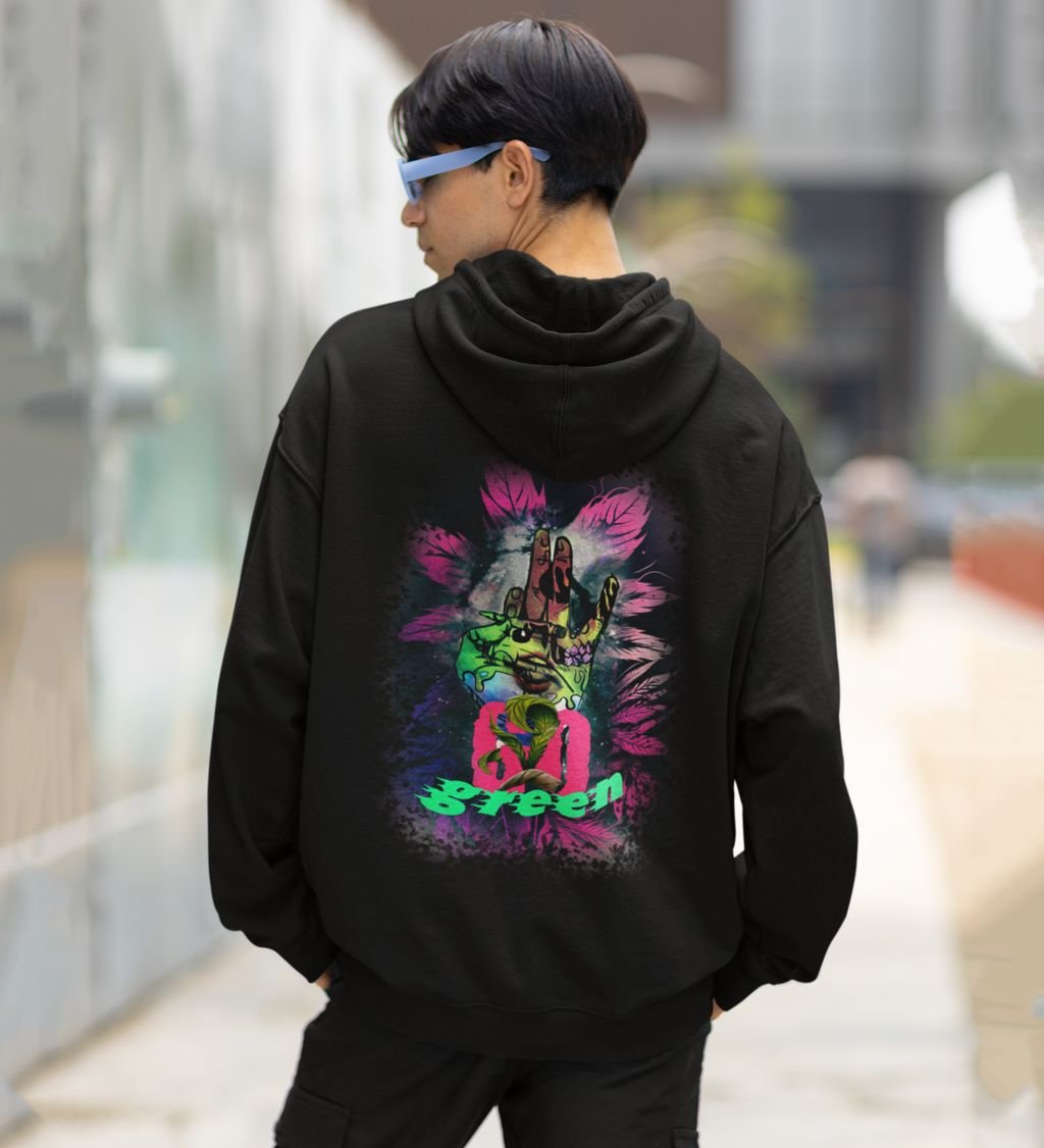 Roll with Nature Style That Celebrates the Green Life Black Cotton Printed Hoodie For Men
