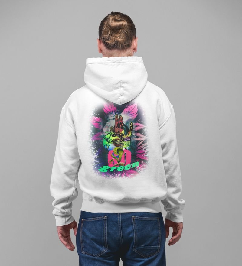 Roll with Nature Style That Celebrates the Green Life White Cotton Printed Hoodie For Men