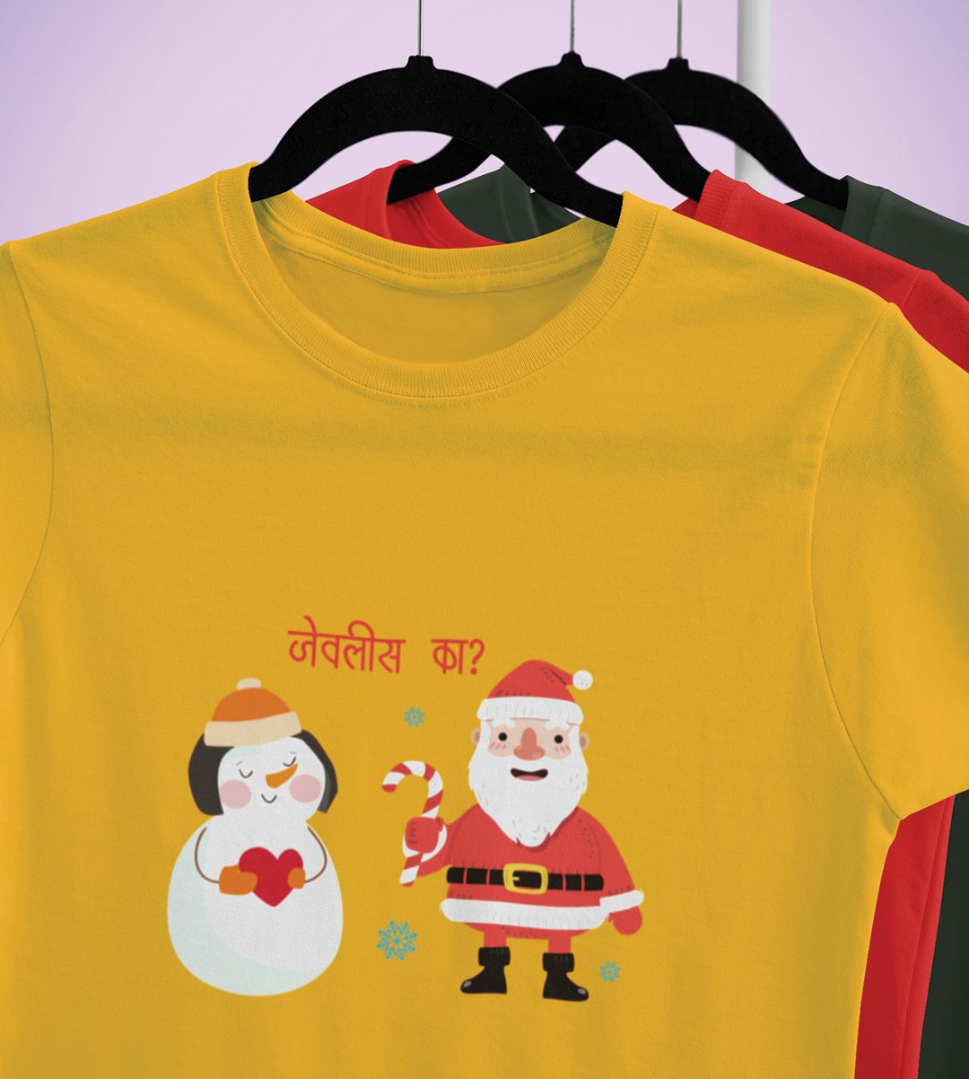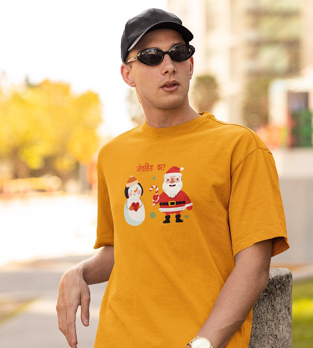 Romantic Santa : Funny Printed T-shirt (Yellow) Perfect Gift For Secret Santa
