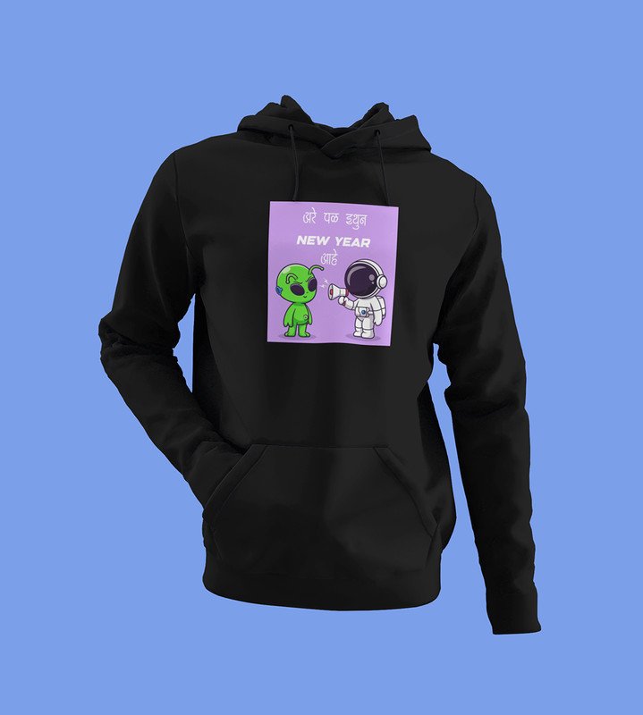 Run Away From Here, Black New Year Printed Hoodies For Mens