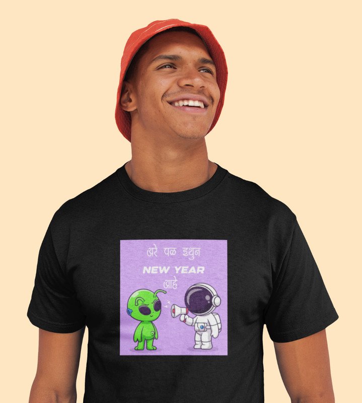 Run Away From Here Black New Year Printed T-shirt For Mens