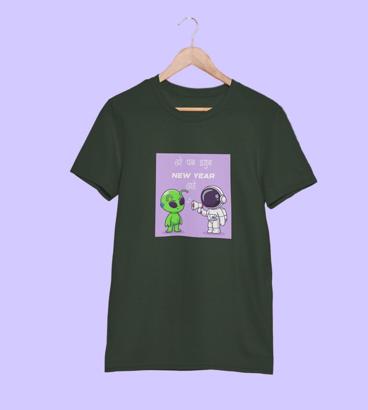 Run Away From Here Green New Year Printed T-shirt For Mens