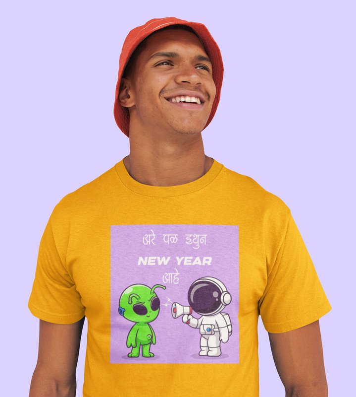Run Away From Here Yellow New Year Printed T-shirt For Mens
