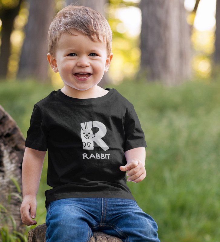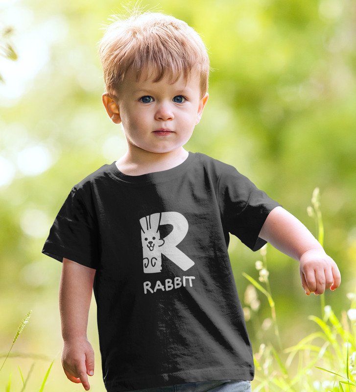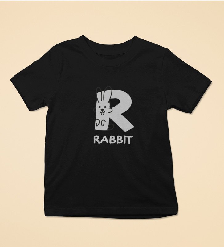 Running Rabit, Printed Cotton Tshirt (black) for Boys