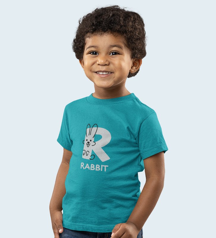 Running Rabit, Printed Cotton Tshirt (Teal) for Boys