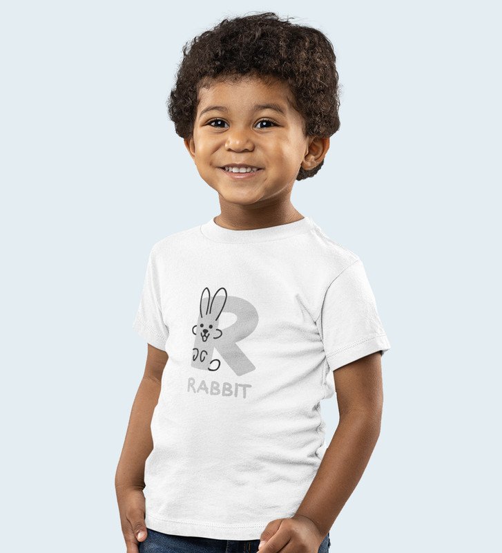 Running Rabit, Printed Cotton Tshirt (White) for Boys