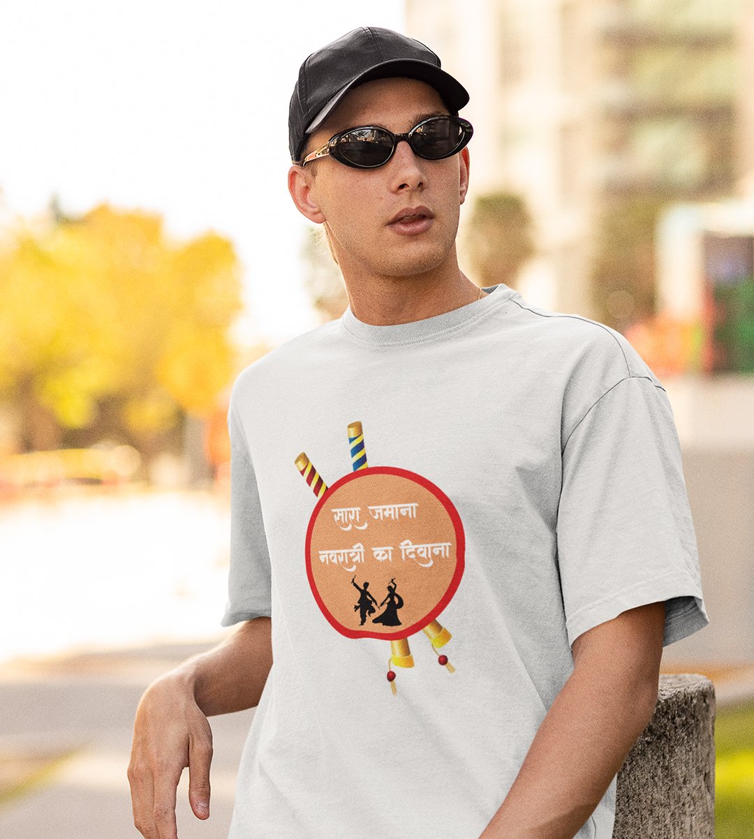 Navratri is a very auspicious festival for hindus. It takes place at the beginning of October and sometimes September. Enjoy the 9 days of festivities with full zeal and make yourself submerged in the love of Maa Durga. Navratri is also known as Durga Puja. And with this Tees, you can shine like a star during this festive season with our navratri themed cotton half sleeved Tshirts. You can pair our t-shirts with trousers and denim of your choice and make it a weekday smart casual or weekend wear. This is durable. This tshirt is smooth and soft which makes you comfortable to wear during all seasons. The printing in it is durable and odourless. It has five sizes, S,M,L,XL,XXL. The Tshirt colour is intact even after repeated washes. It can be kept in your wardrobe and hangers. Please avoid washing mashine to clean this Tee, it may affect the print. Hand wash only. We have brought you many navratri related designs printed on our different colour Tshirts to choose from. Grab it now.