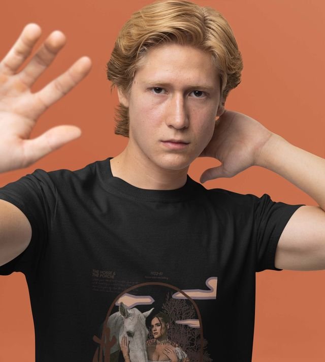 Saddle Beauty: Girl with Horse Graphic Printed Black T-Shirt
