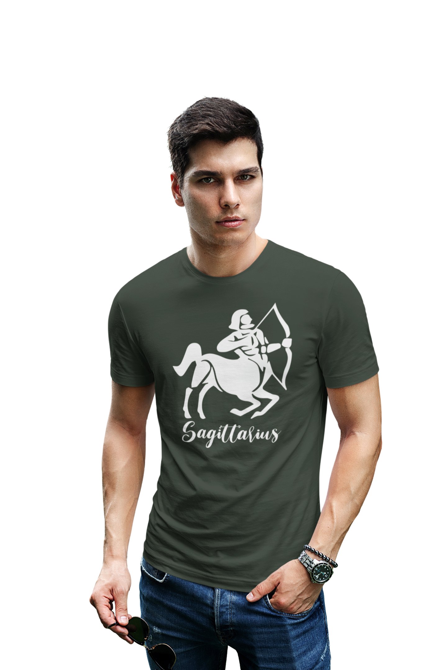 Sagittarius (BG White) (Green T) - Printed Zodiac Sign Tshirts - Made especially for astrology lovers people