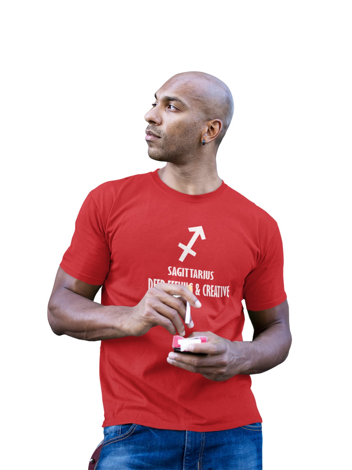 Sagittarius, feel feeling and creative (Red T) - Printed Zodiac Sign Tshirts - Made especially for astrology lovers people