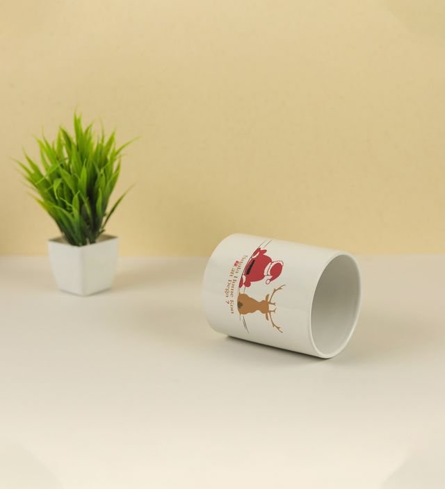 Sala Hume Kon Gift Dega? Santa and Deer Await Printed Coffee Mugs