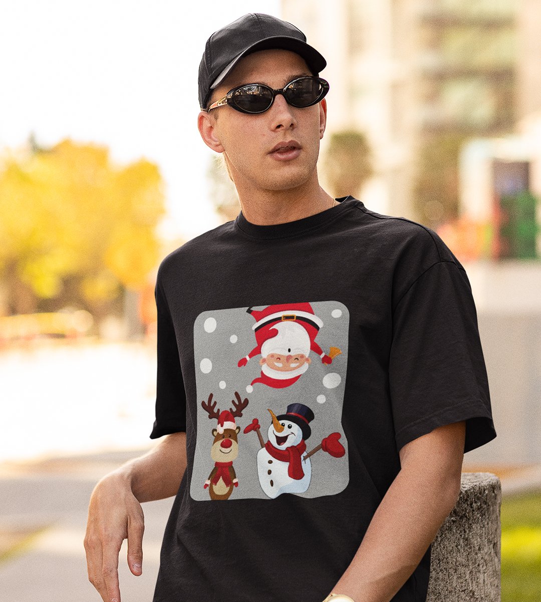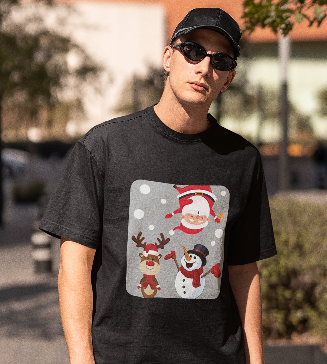 Santa And His Friends: Unwrap Joy with(Black) T-shirt- Durable Printed for Festive Gifts For Boys Girls