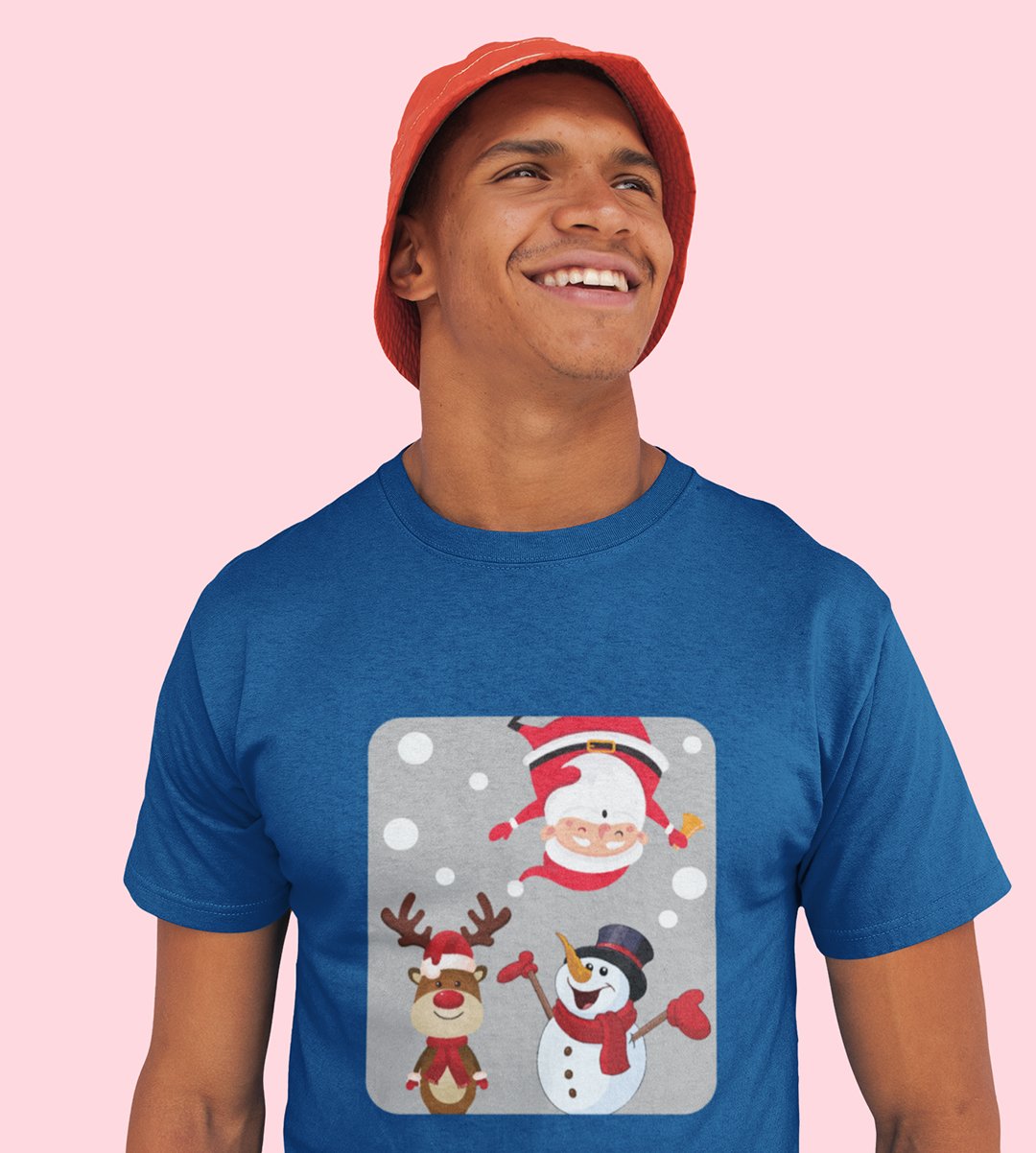 Santa And His Friends: Unwrap Joy with(Blue) T-shirt- Durable Printed for Festive Gifts For Boys Girls
