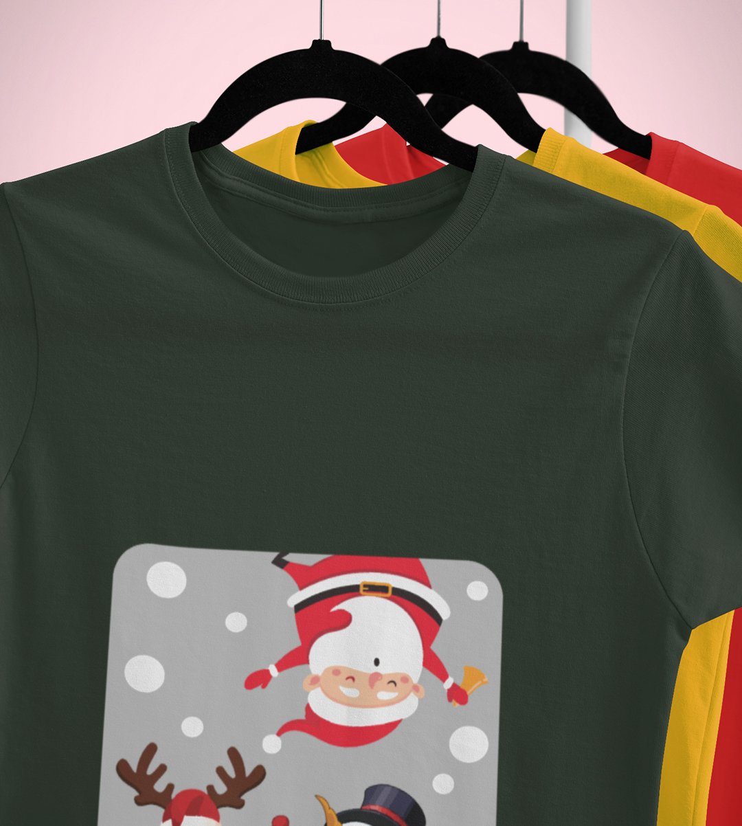 Santa And His Friends: Unwrap Joy with(Green) T-shirt- Durable Printed for Festive Gifts For Boys Girls