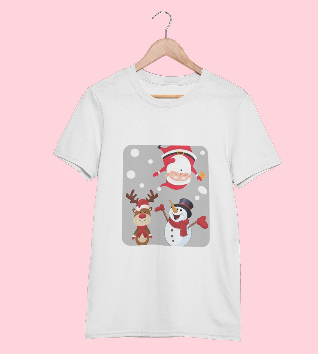 Santa And His Friends: Unwrap Joy with(White) T-shirt- Durable Printed for Festive Gifts For Boys Girls