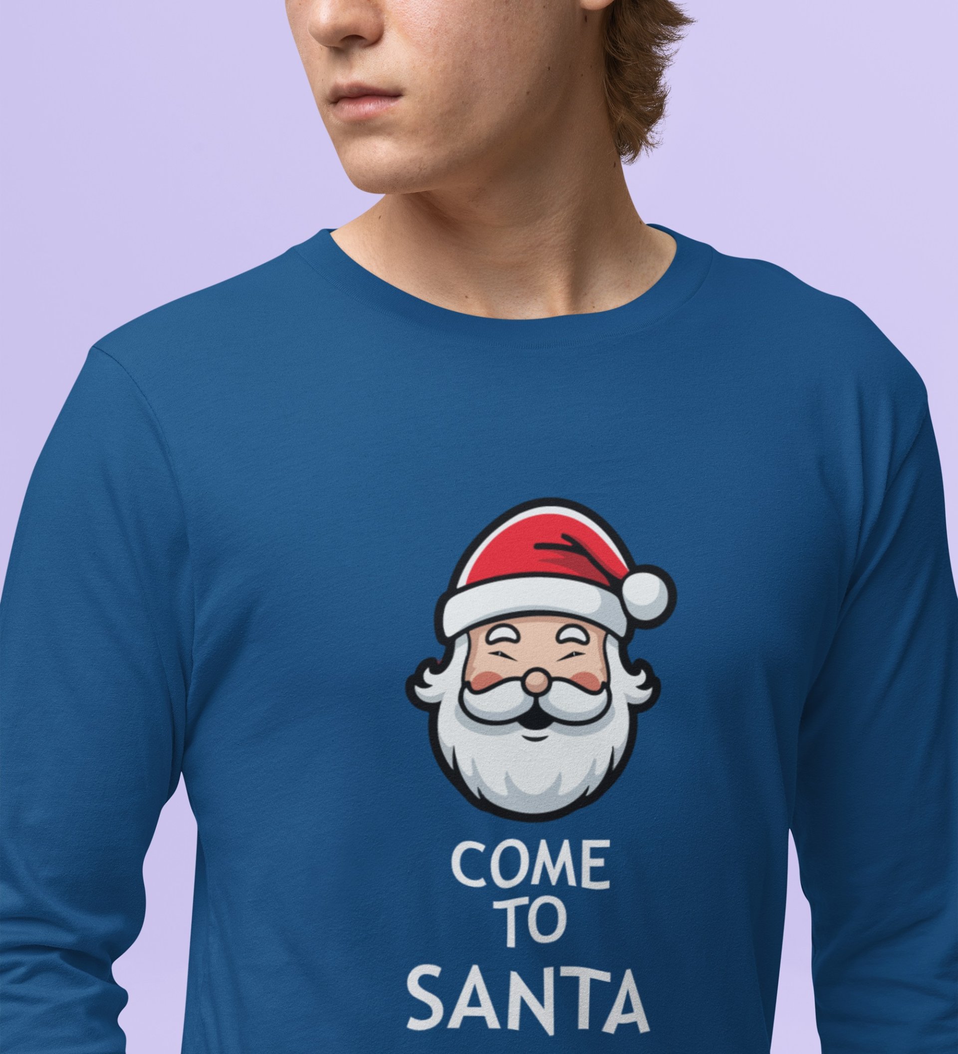 Santa Is Calling: DesignerFull Sleeve T-shirt Blue Best Gift For Boys Girls
