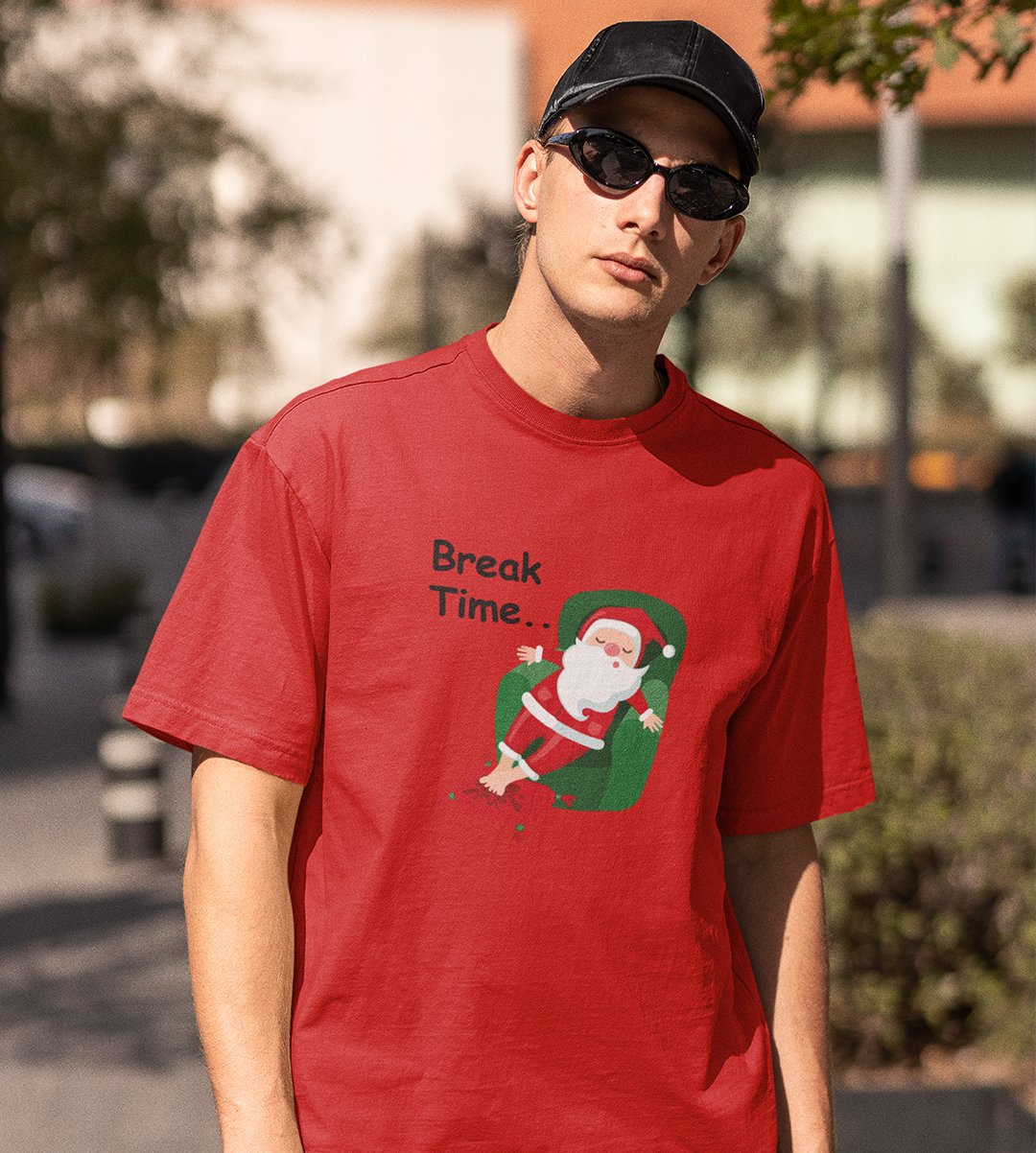 Santa Is On Break: Cute Printed T-shirte (Red) Best Gift For Boys Girls