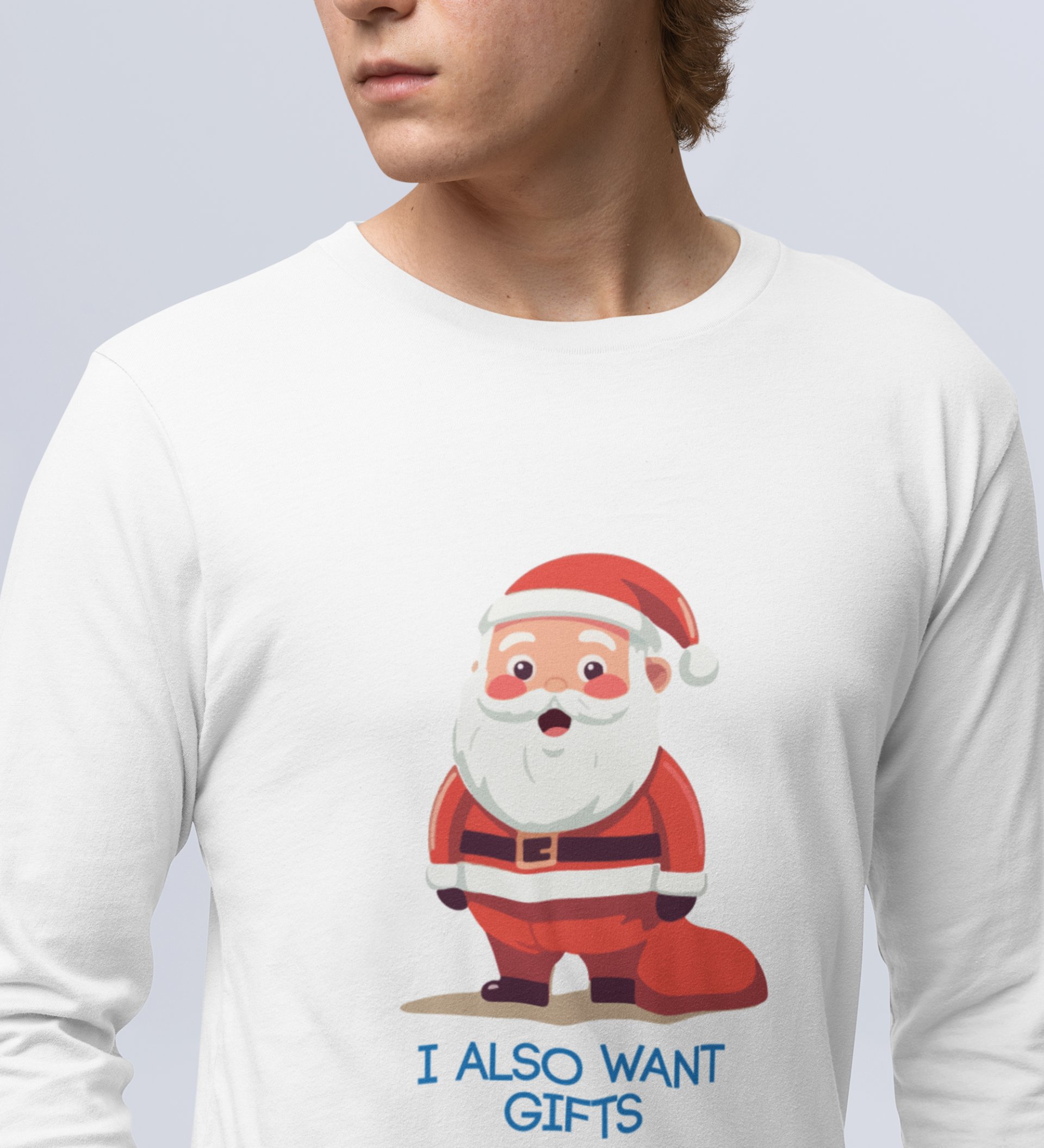 Santa Is Waiting For Gifts: Best DesignerFull Sleeve T-shirt White Unique Gifts For Secret Santa