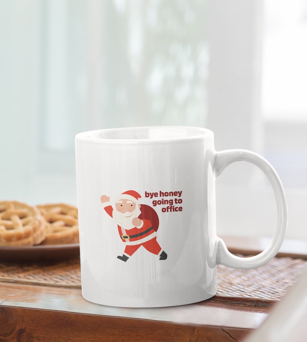 Santa Leaving For Office Design Coffe Mug Theme Christmas Gift