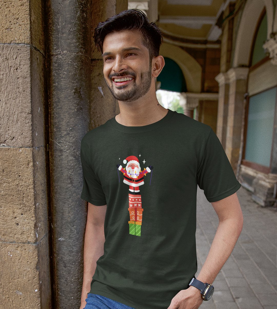 Santa On His Gifts : Best Santaclaus Printed T-shirt (Green) Best Gift For Secret Santa