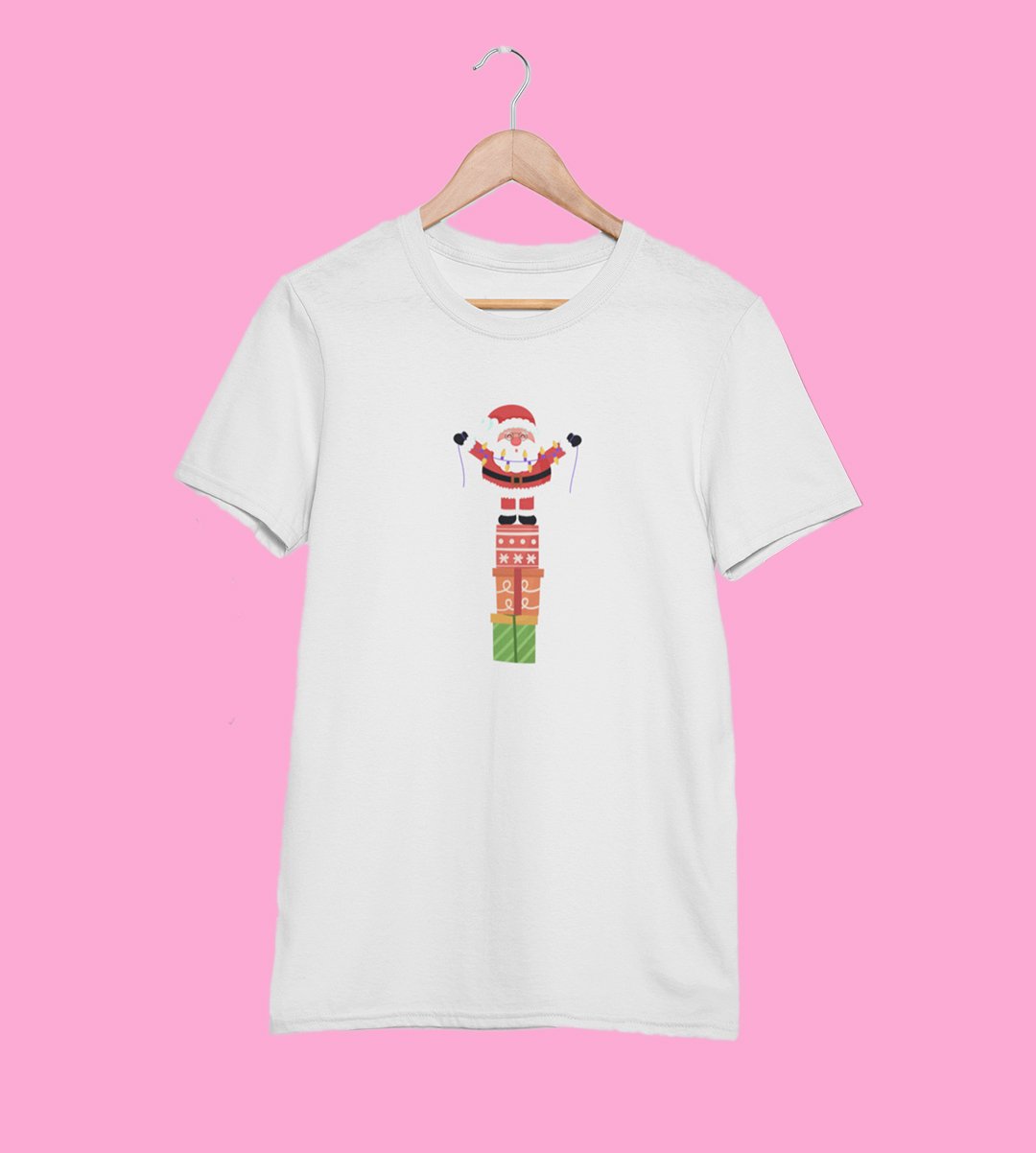 Santa On His Gifts : Best Santaclaus Printed T-shirt (White) Best Gift For Secret Santa