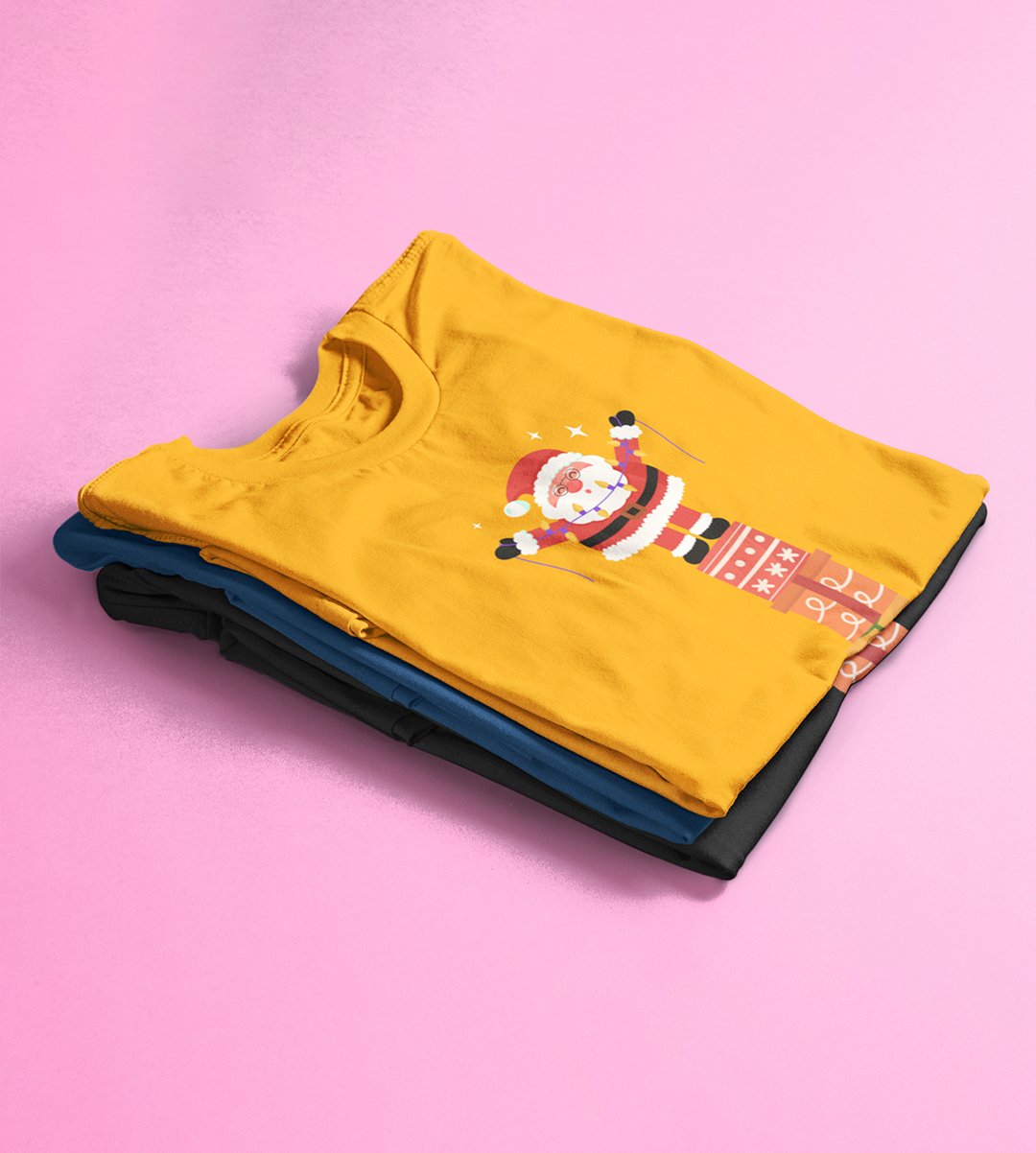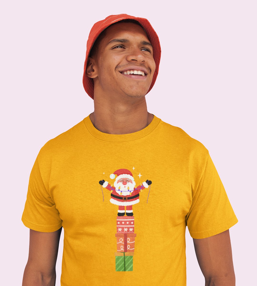 Santa On His Gifts : Best Santaclaus Printed T-shirt (Yellow) Best Gift For Secret Santa