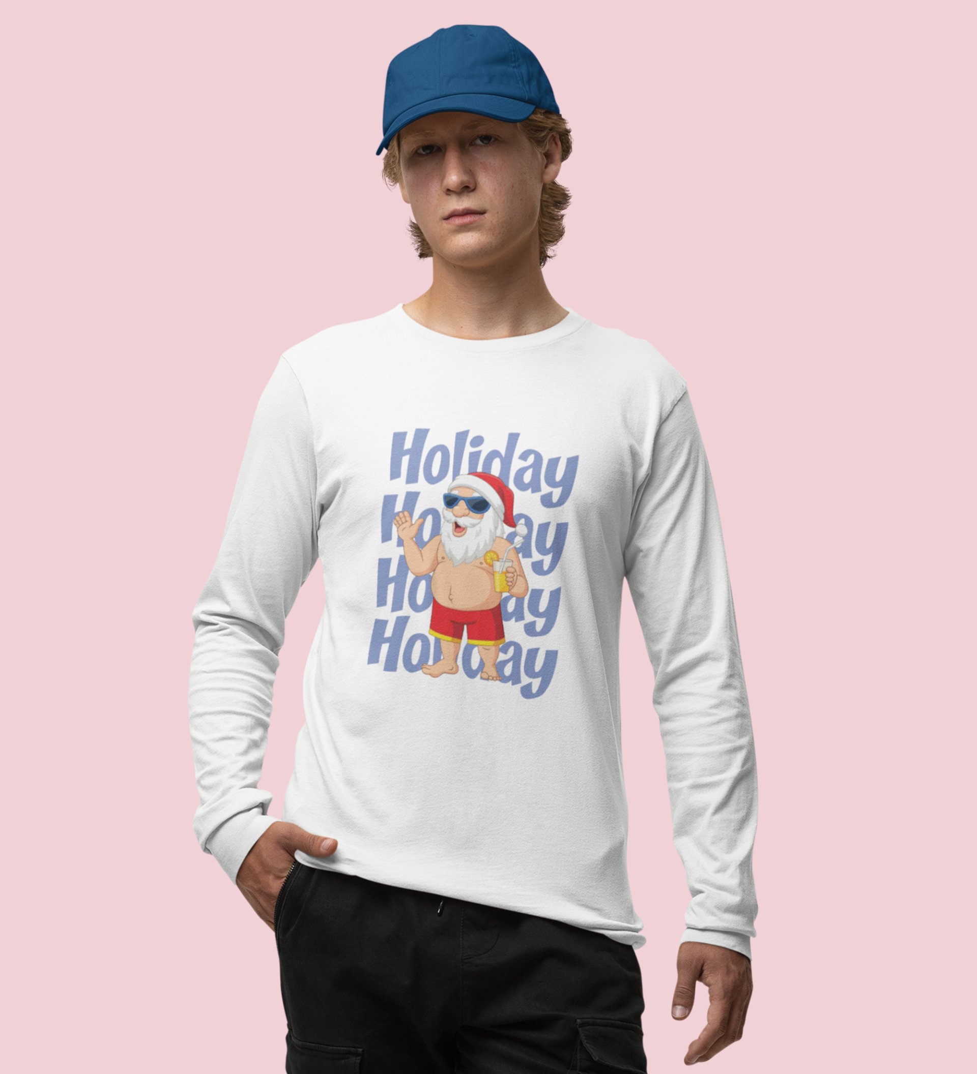 Santa On VactionFull Sleeve T-shirt: Exclusive Gift For Boys GirlsWhite Cool SantaFull Sleeve T-shirt, A Perfect Gift For Secret Santa