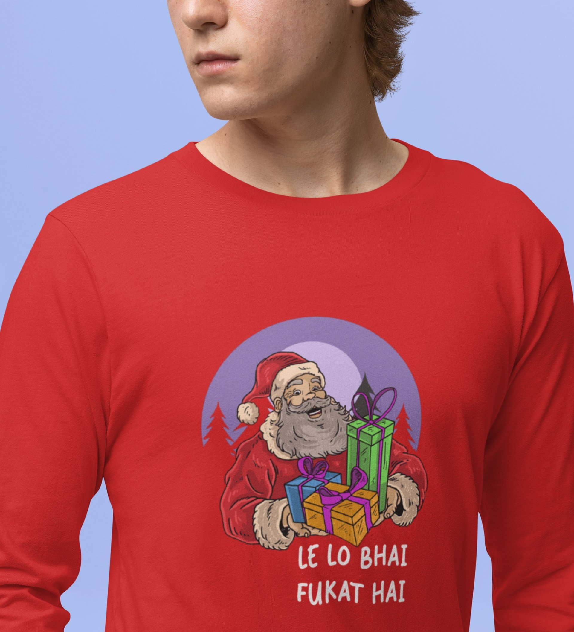 Santa's Bestfriend: Cute DesignerFull Sleeve T-shirt RedBest Gift For Boys Girls