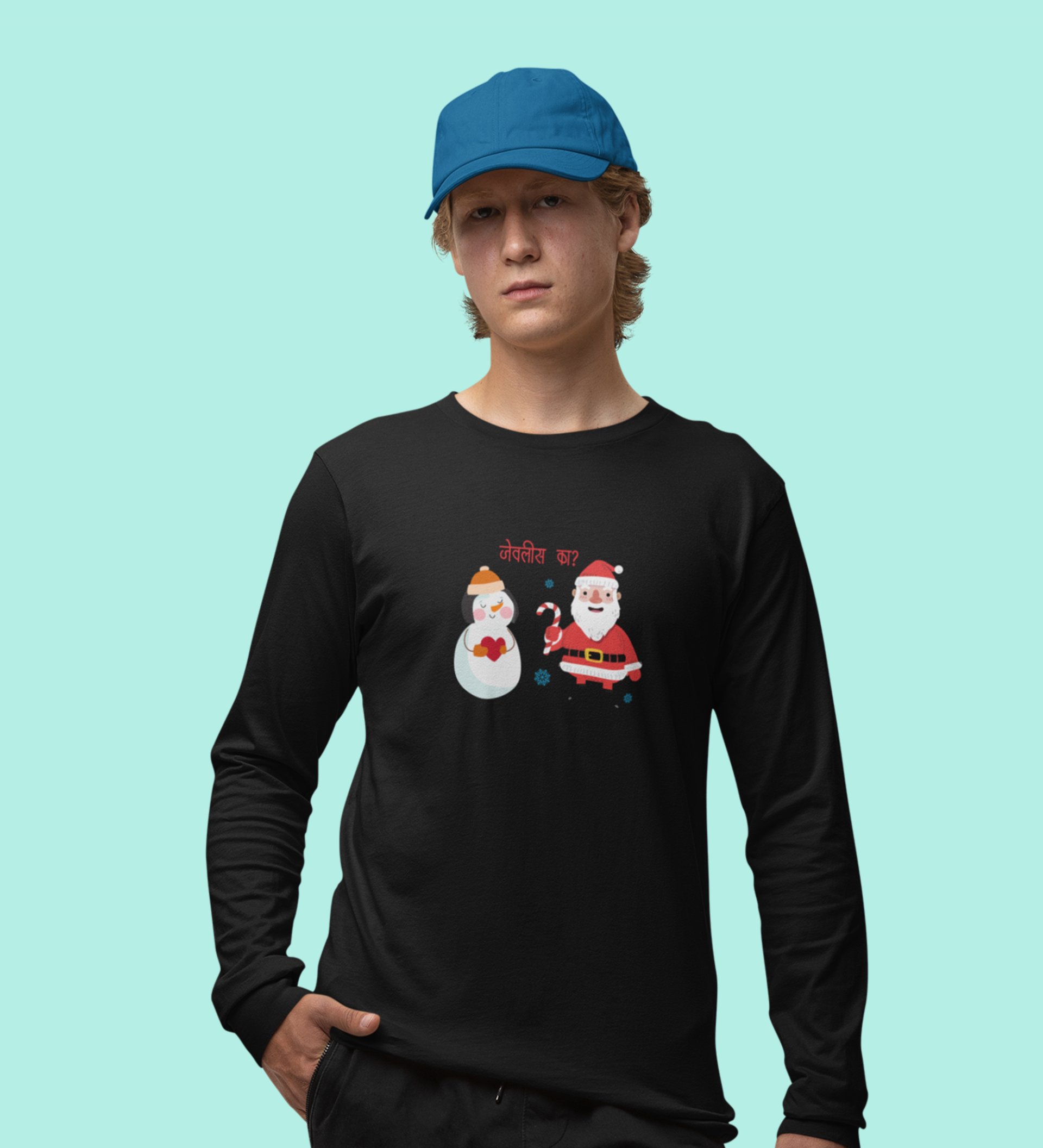 Santa's Lovestory: Romantic DesignerFull Sleeve T-shirt Black Amazing Gift For Boys Girls