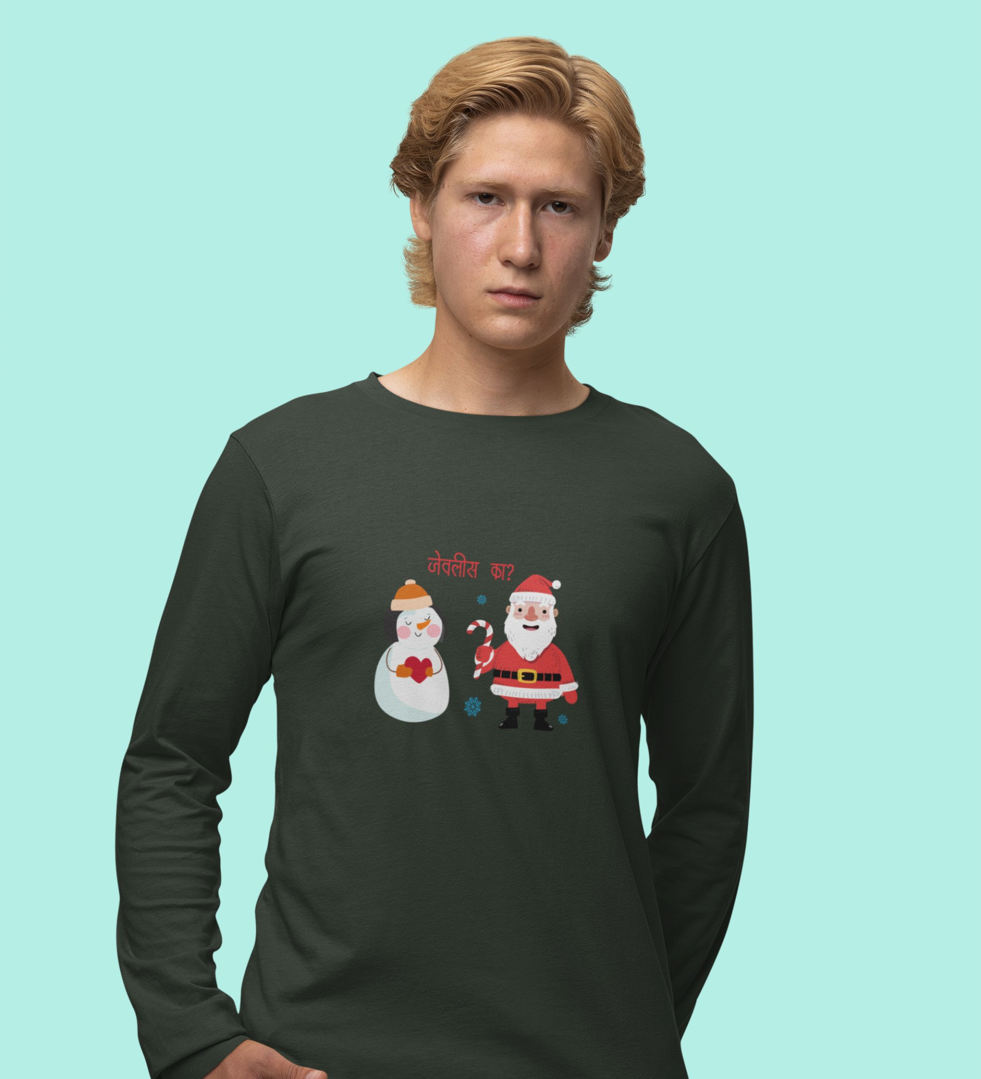 Santa's Lovestory: Romantic DesignerFull Sleeve T-shirt Green Amazing Gift For Boys Girls