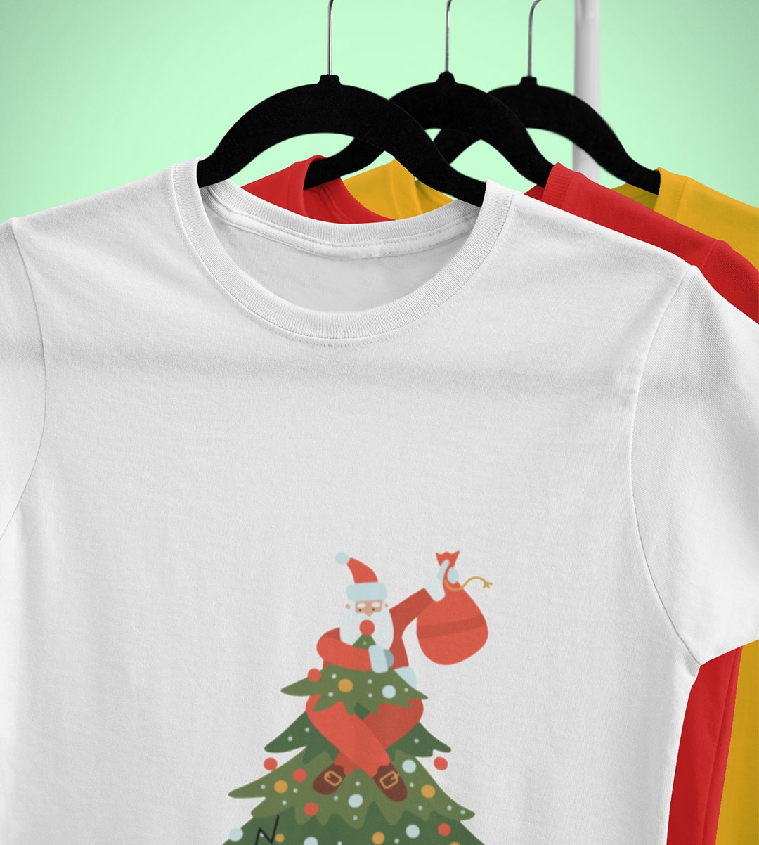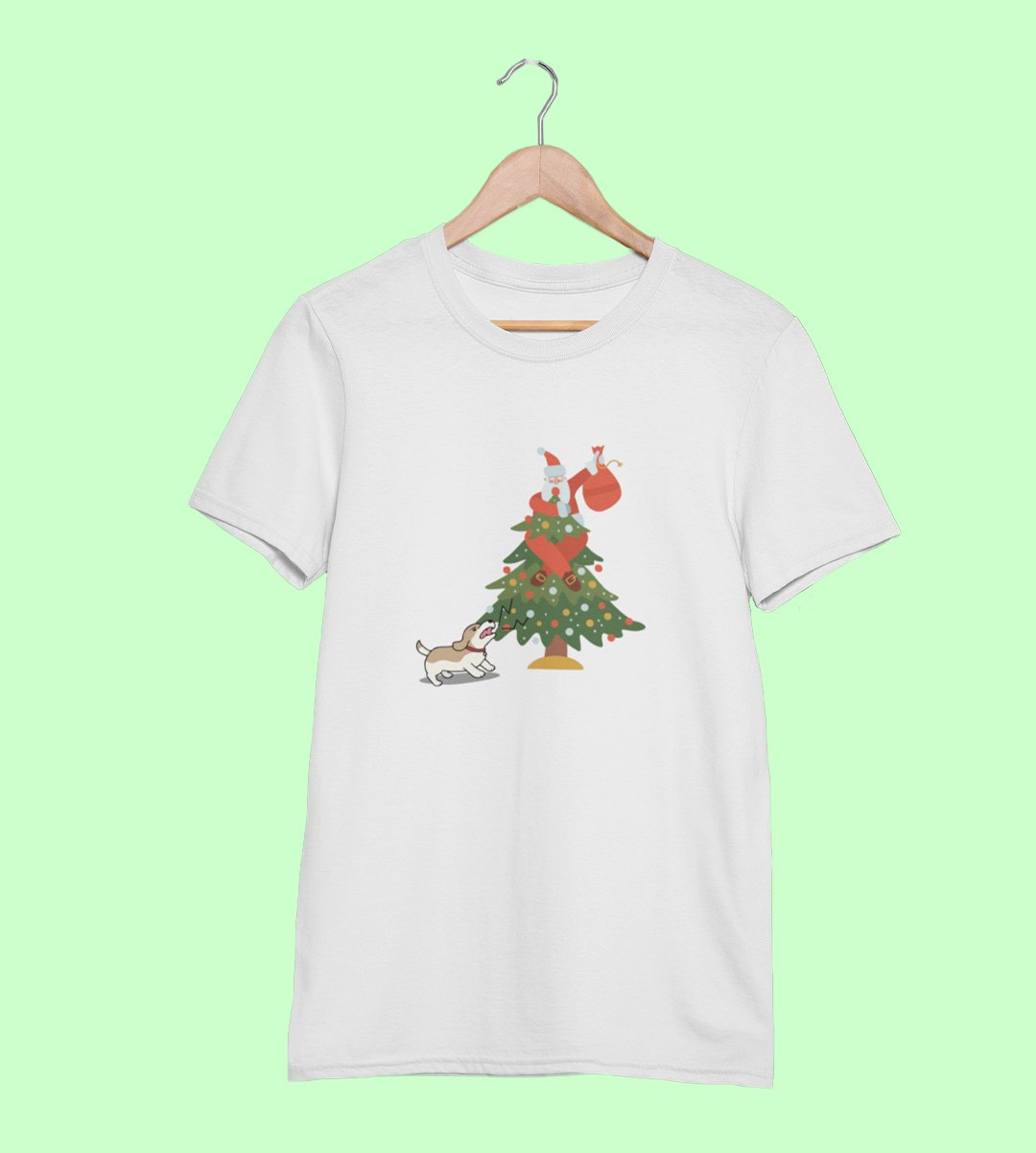 Santa's On Tree: Best Printed T-shirt (White) Best Gift For Secret Santa