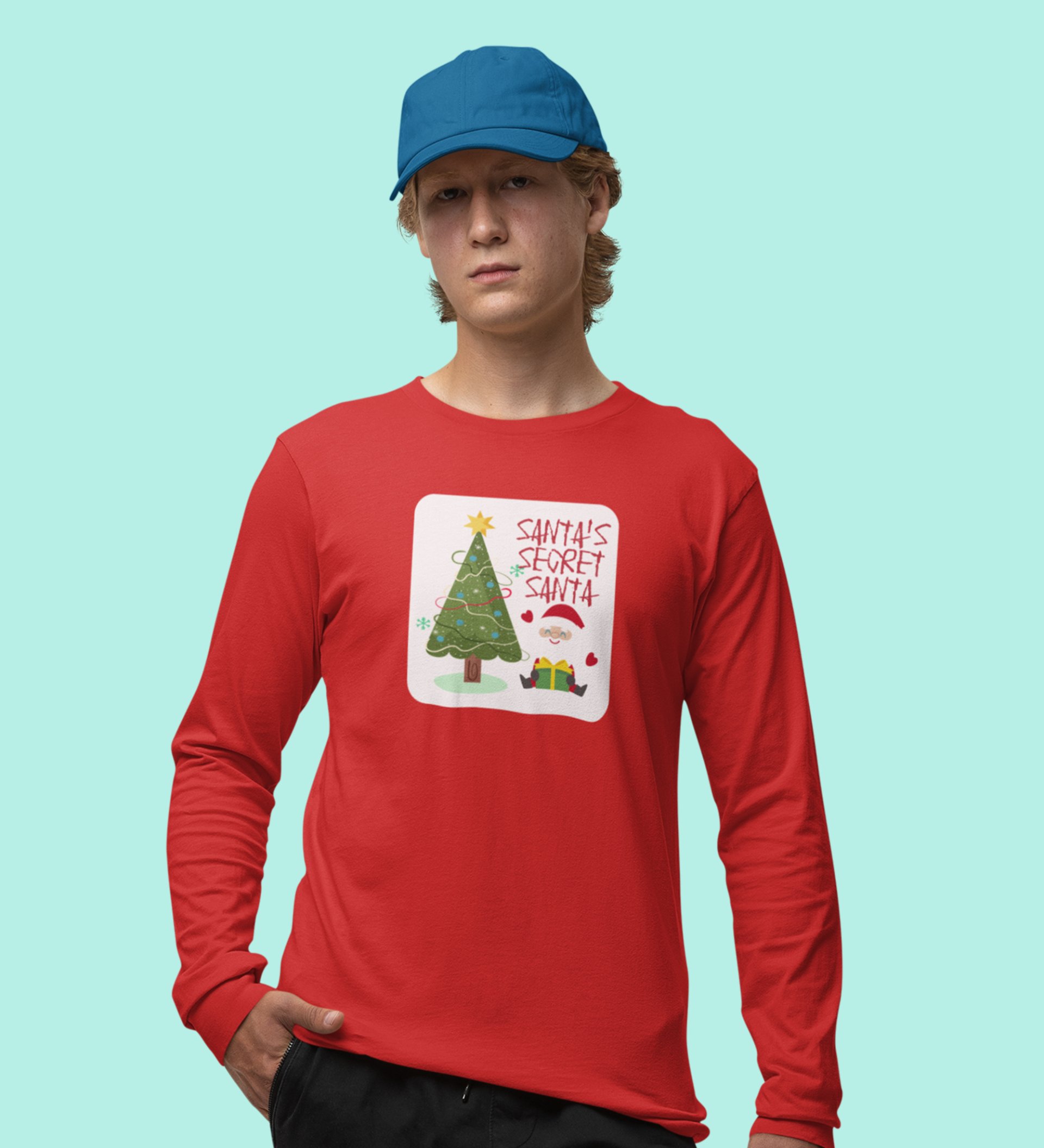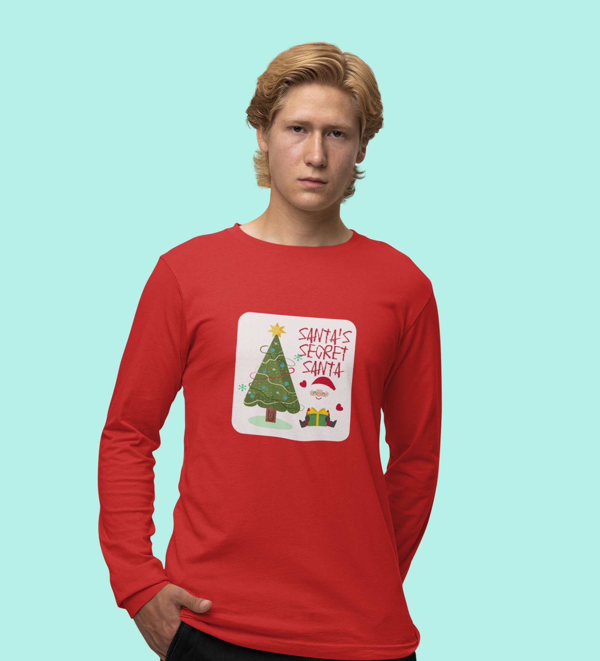 Santa's Secret Santa: Elegantly DesignedFull Sleeve T-shirt Red Perfect Gift For Secret Santa