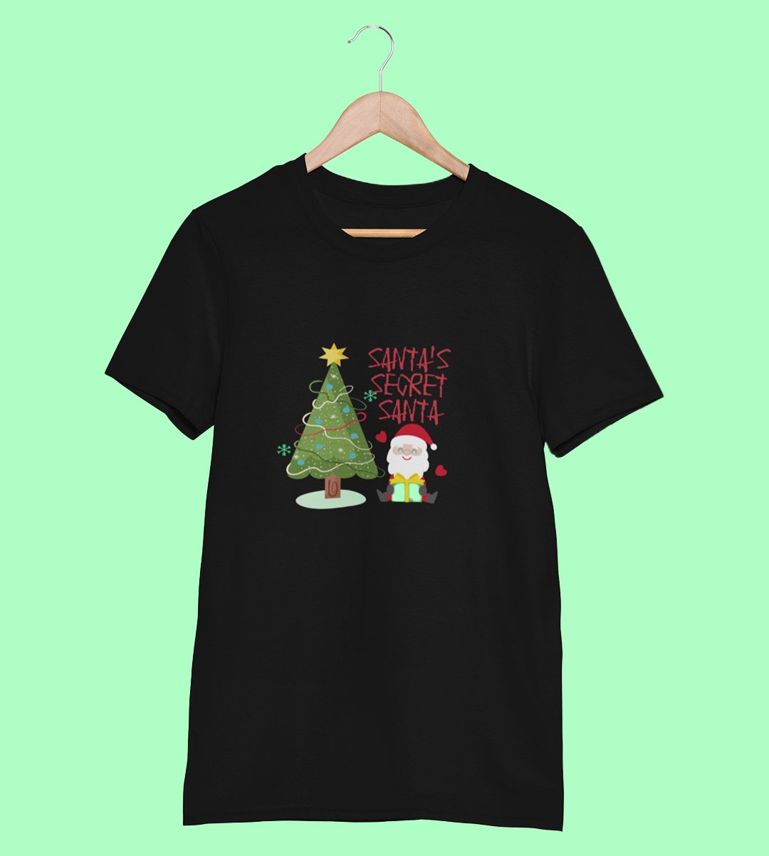 Santa's Secret Santa: Elegantly Printed T-shirt (Black) Perfect Gift For Secret Santa