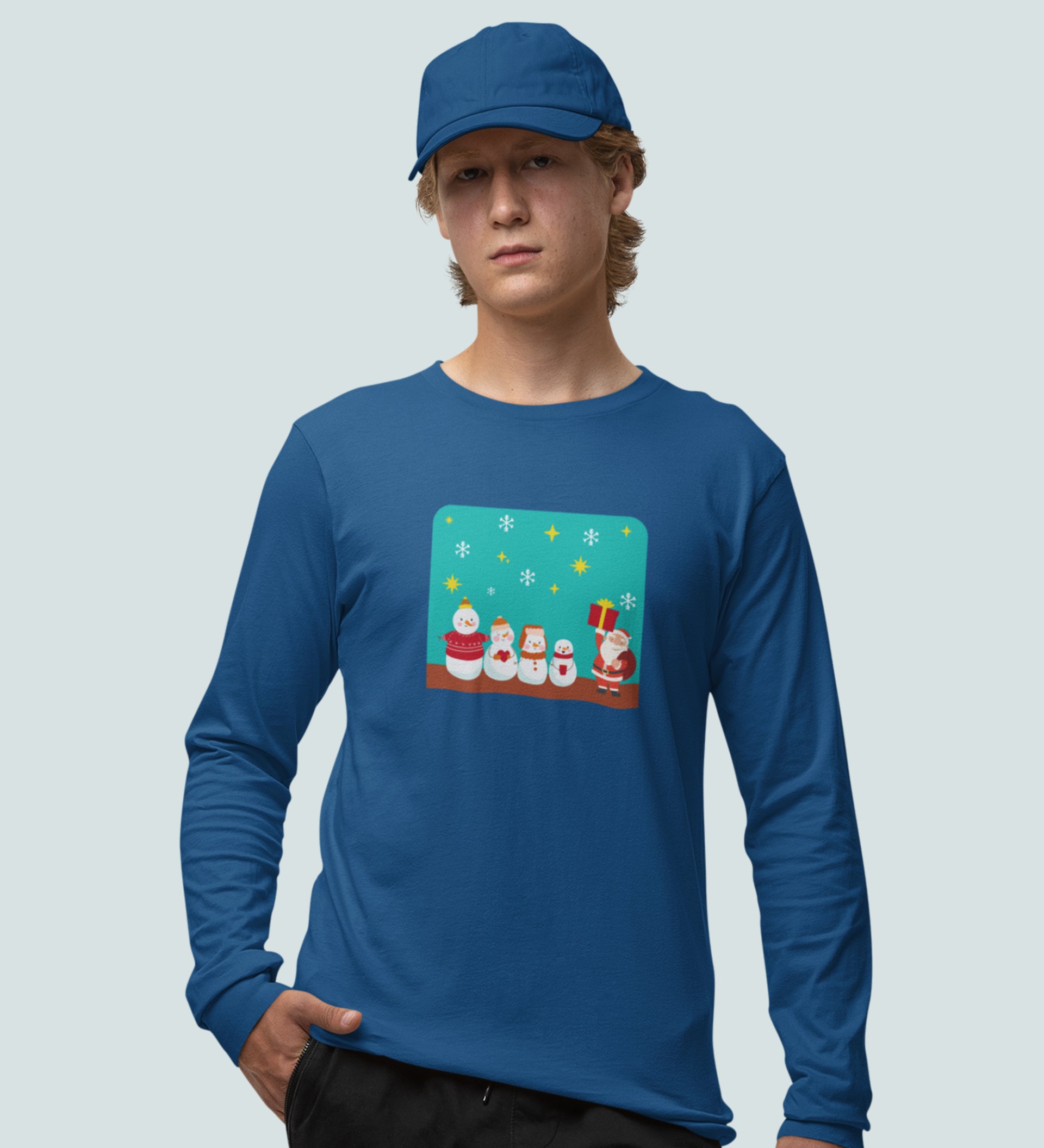 Santa's Squad: Cute DesignedFull Sleeve T-shirt Blue Perfect Gift For kids